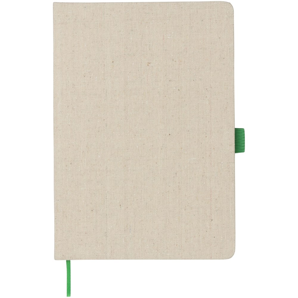 A5 formaat canvas notitieboekje met gekleurde elastieksluiting en paginalint. Een elastische penlus en 80 pagina's van 70 gram met gelinieerd papier.