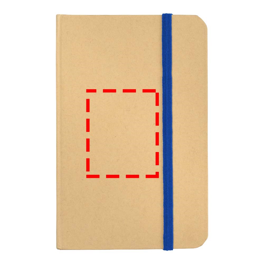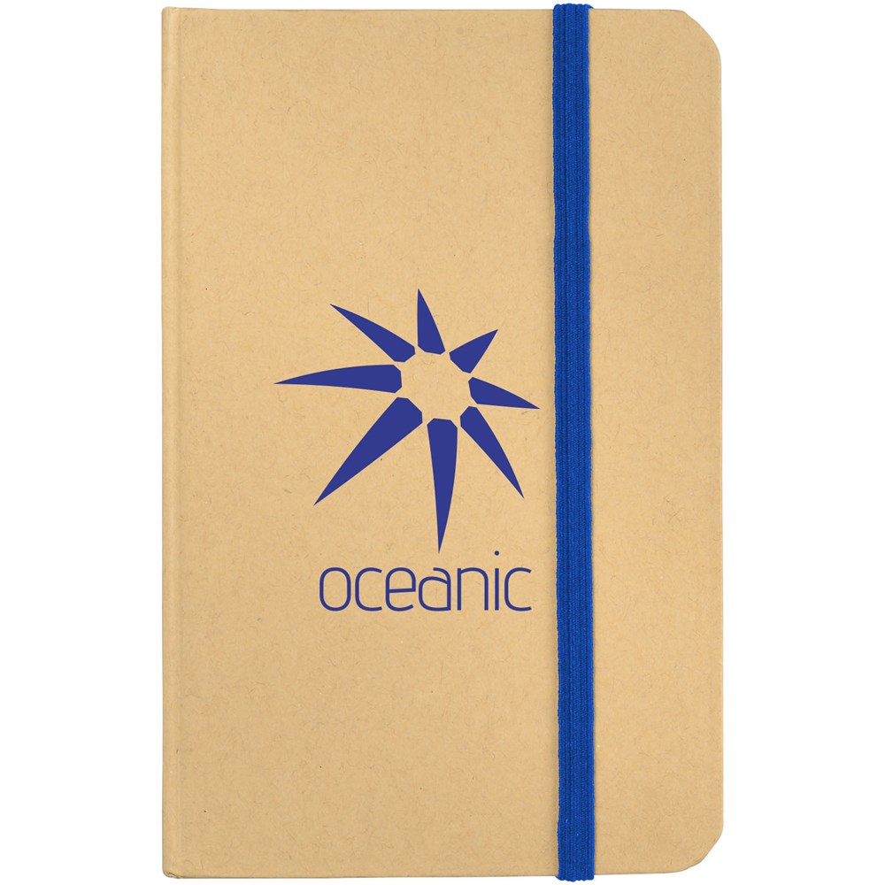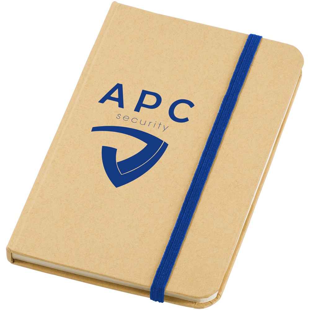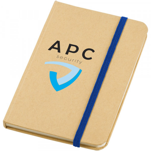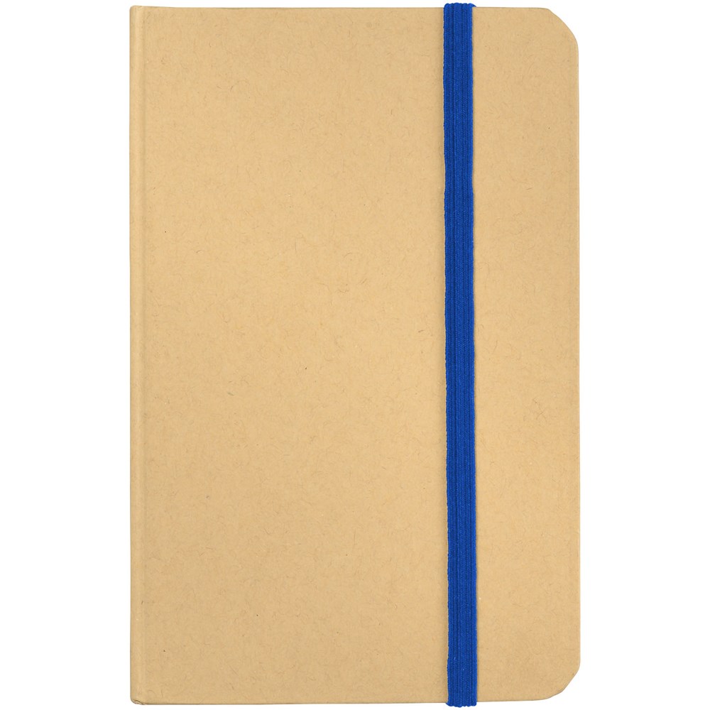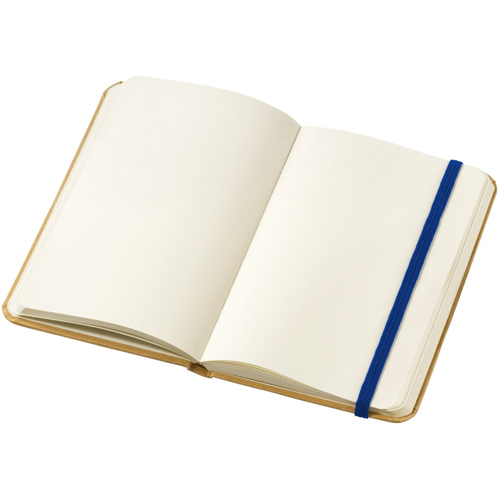 A6 formaat notitieboek met 80 pagina's van 70 gram blanco papier en elastieksluiting.
