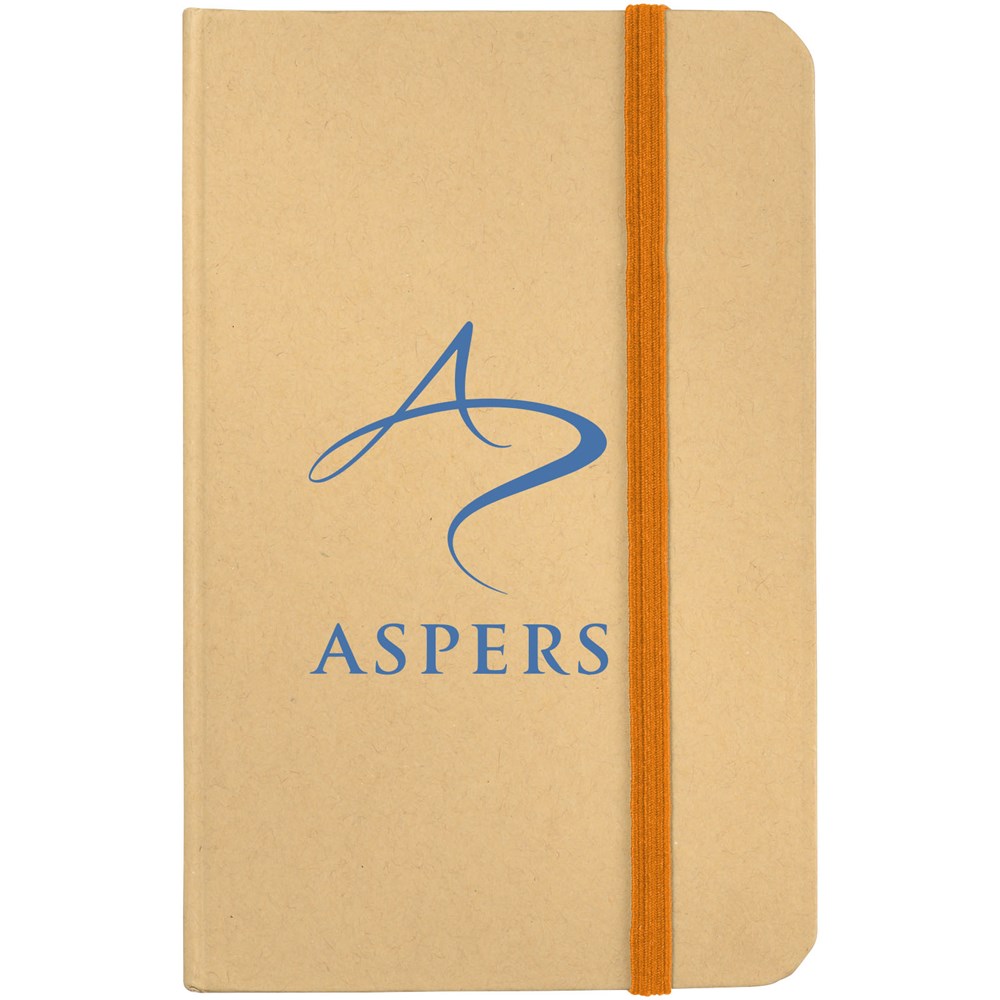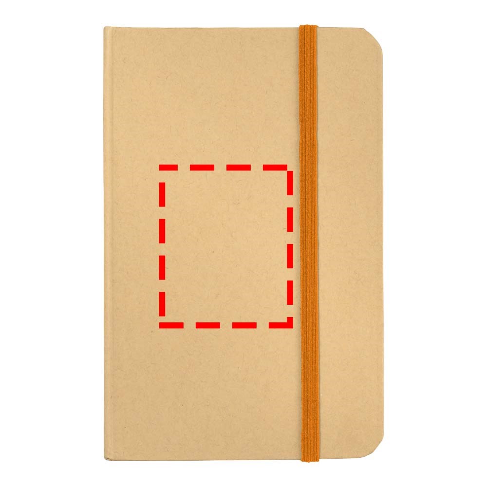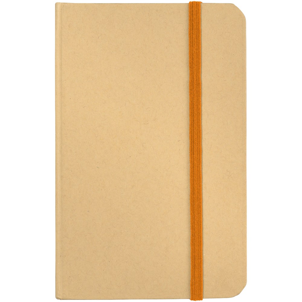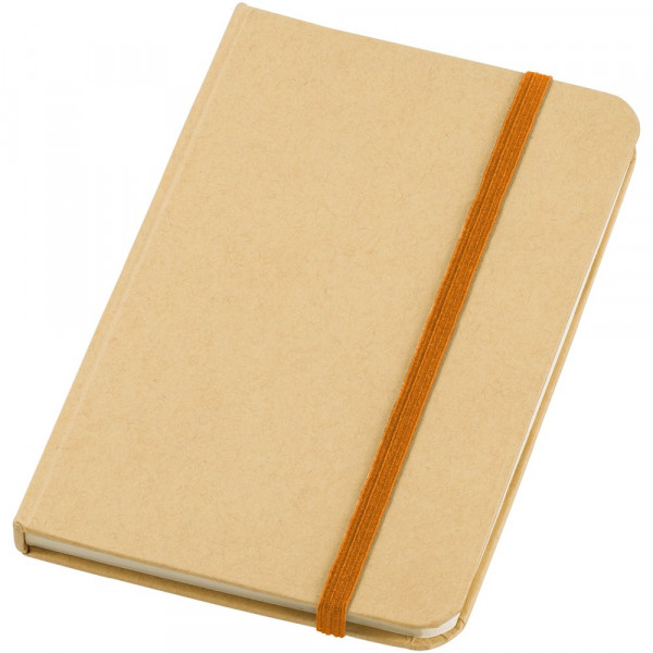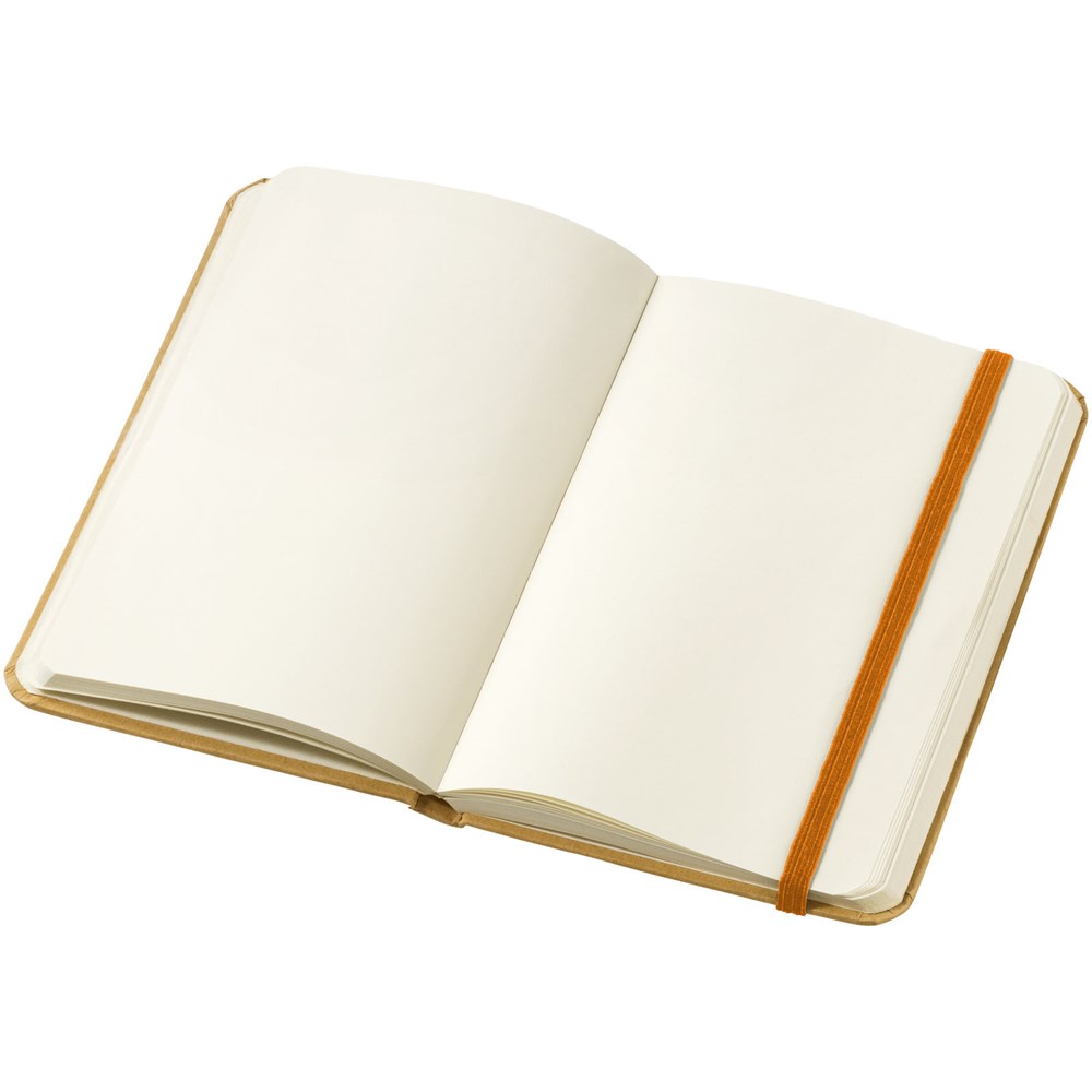 A6 formaat notitieboek met 80 pagina's van 70 gram blanco papier en elastieksluiting.