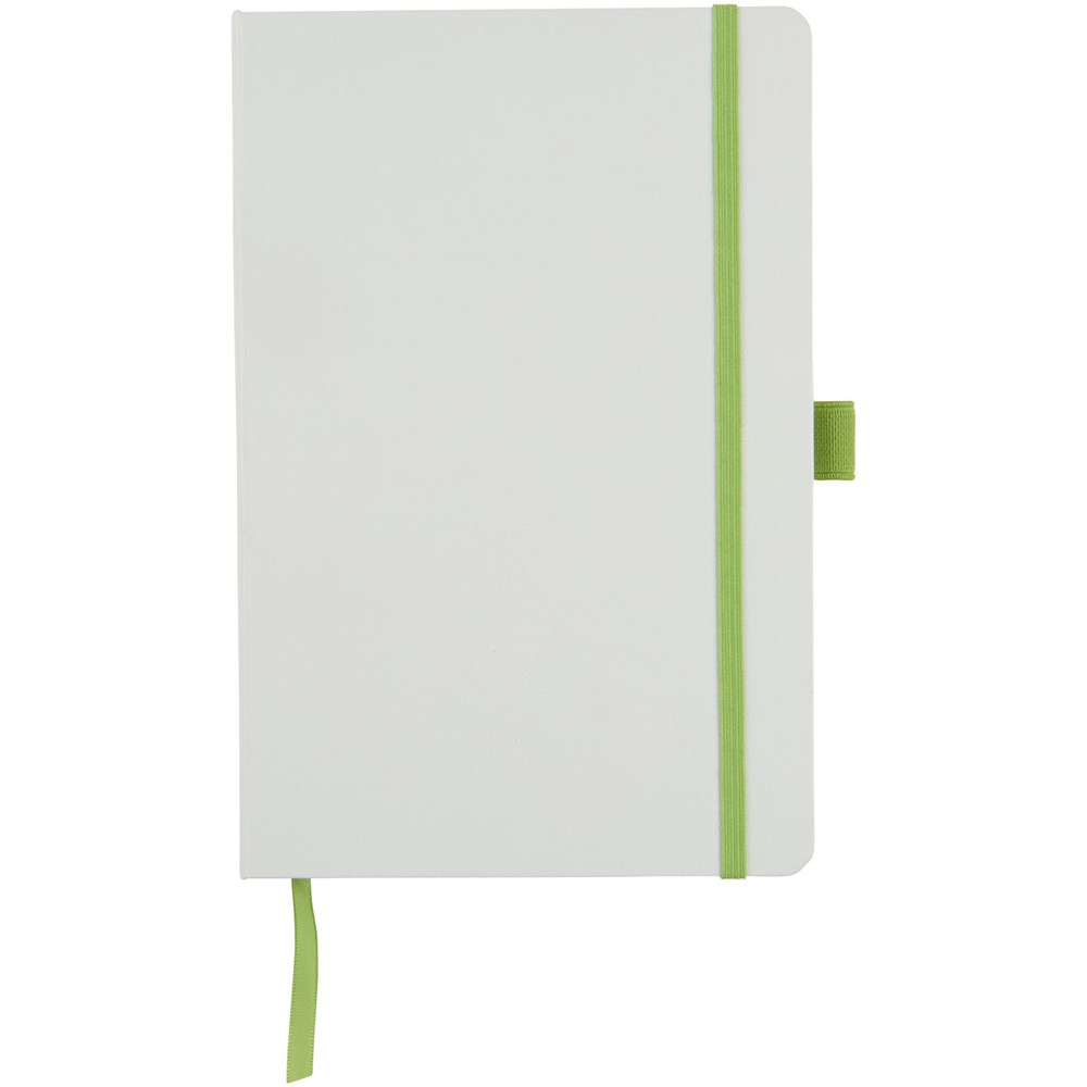 Hardcover A5 formaat notitieboekje voor de creatieve professional voor het maken van notities of het maken van schetsen. De verschillende kleurige papier met bijpassende gekleurde elastieke sluiting en lintmarkering geven het notitieboek een extra frisse uitstraling. Overige kenmerken zijn onder meer 40 pagina's van 80 gram gelinieerd papier en 40 pagina's van 80 gram blanco papier. Een opbergvak om losse notities en papieren bij elkaar te houden. Verpakt in een witte geschenketui.