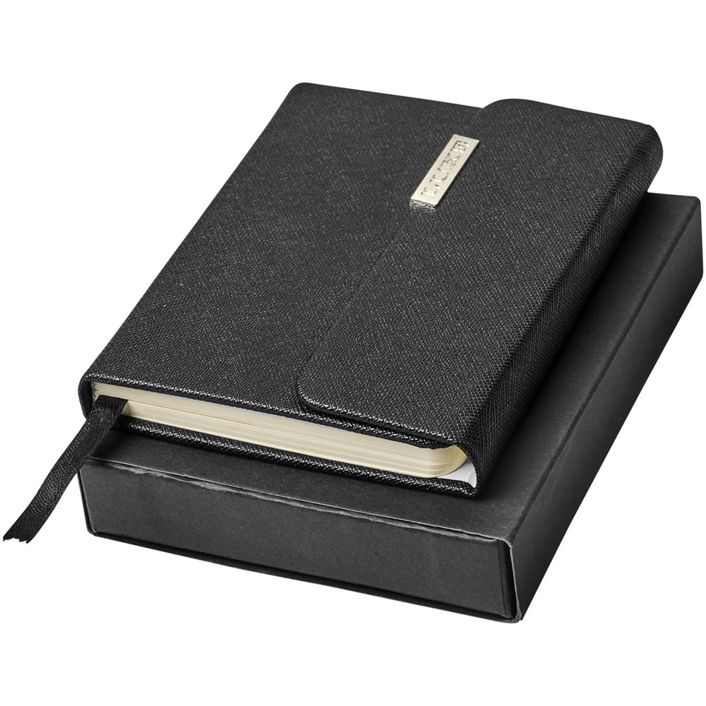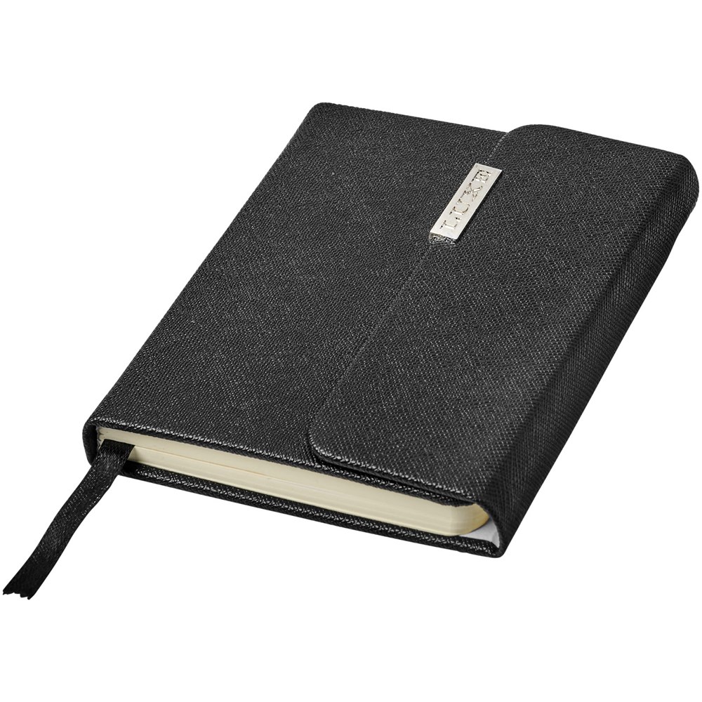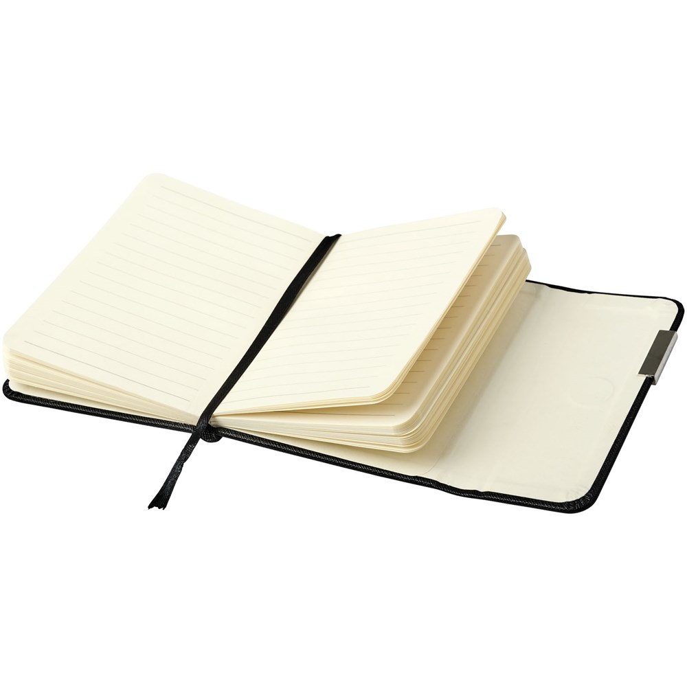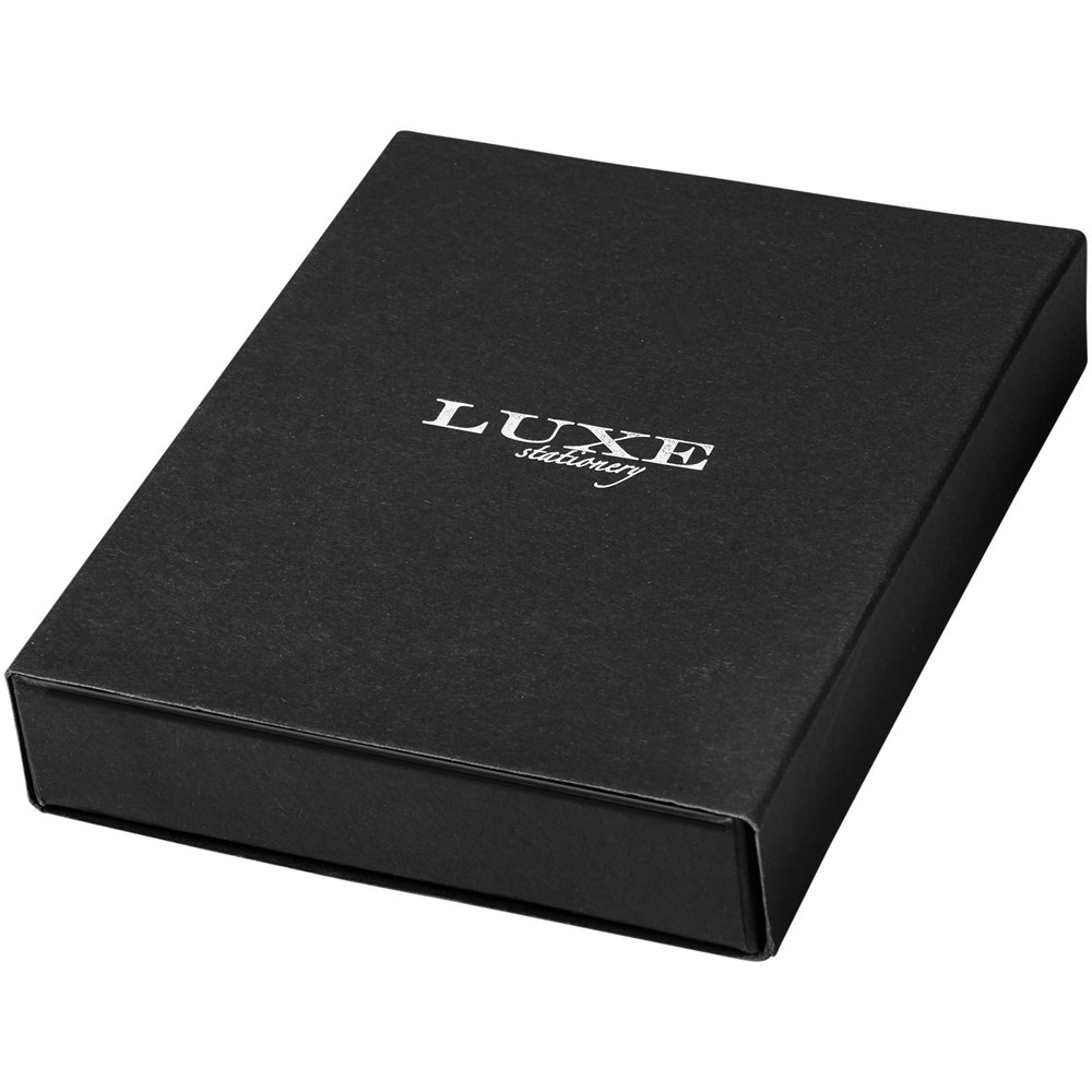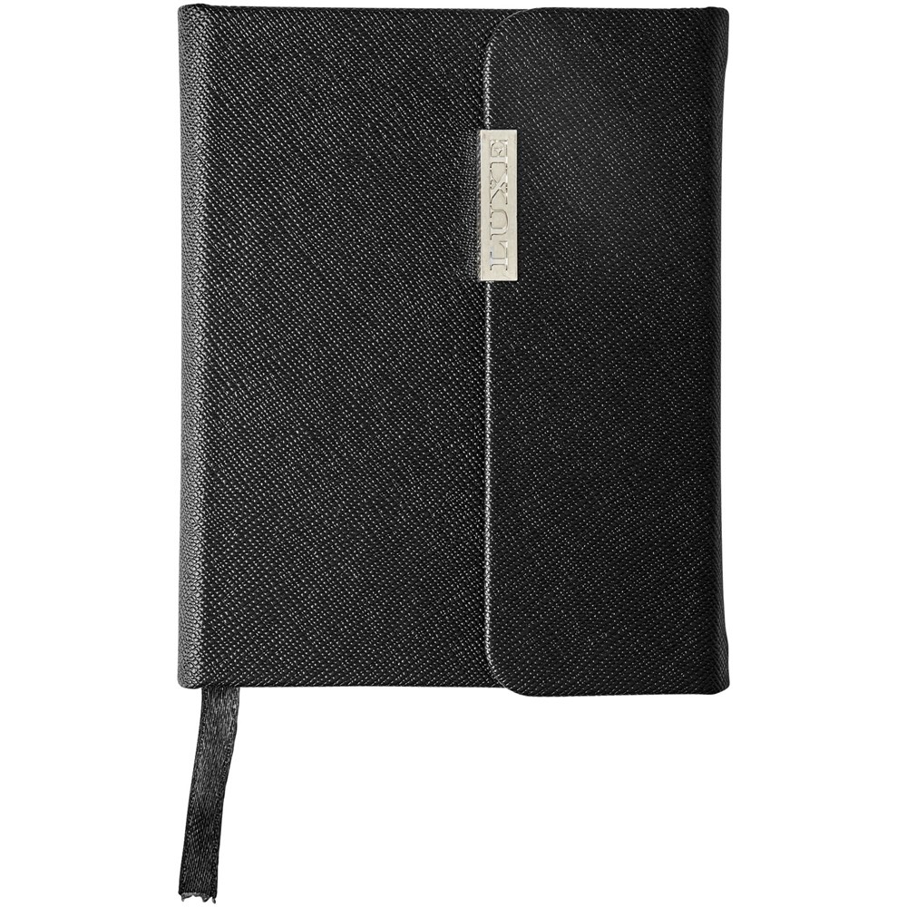 Zakformaat notitieboek in saffianostijl, geleverd in 'Luxe' hoes. Het notitieboek heeft 80 vellen crèmekleurig gelinieerd papier en een lint als bladwijzer.
