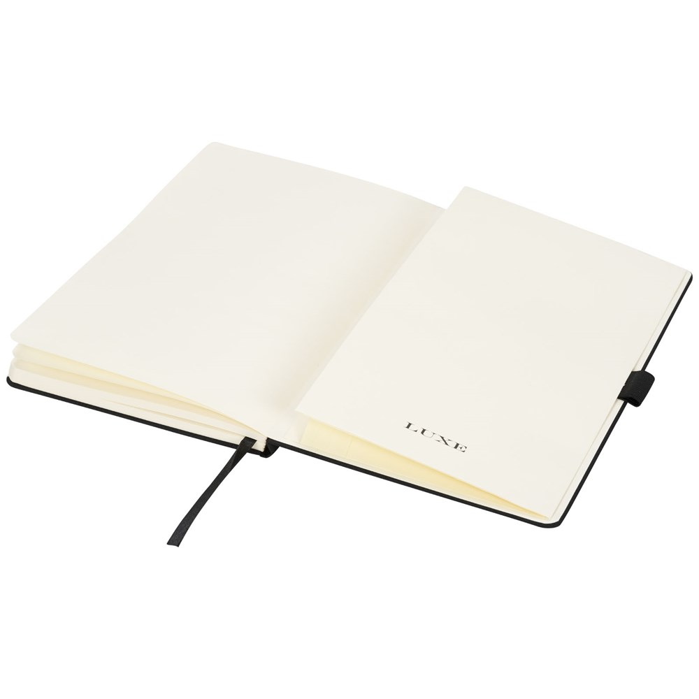Klassiek notitieboekje, voorzien van met doek overtrokken omslag en elastieksluting. Met 80 vel (80 g/m2) crèmekleurig gelinieerd papier. Ideaal voor aantekeningen en briefjes. Flexibel opbergvak aan de achterzijde voor kleine notities. Geleverd in ''LUXE'' geschenkverpakking.