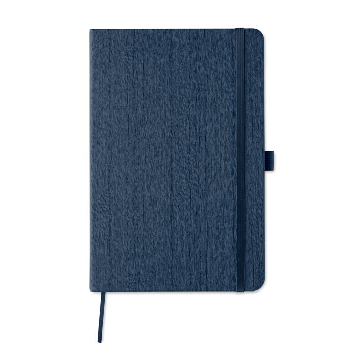 A5 notitieboek met PU cover in houtstructuur look. Met 80 gelinieerde pagina's, leeslint, pennenlus en sluitelastiek.