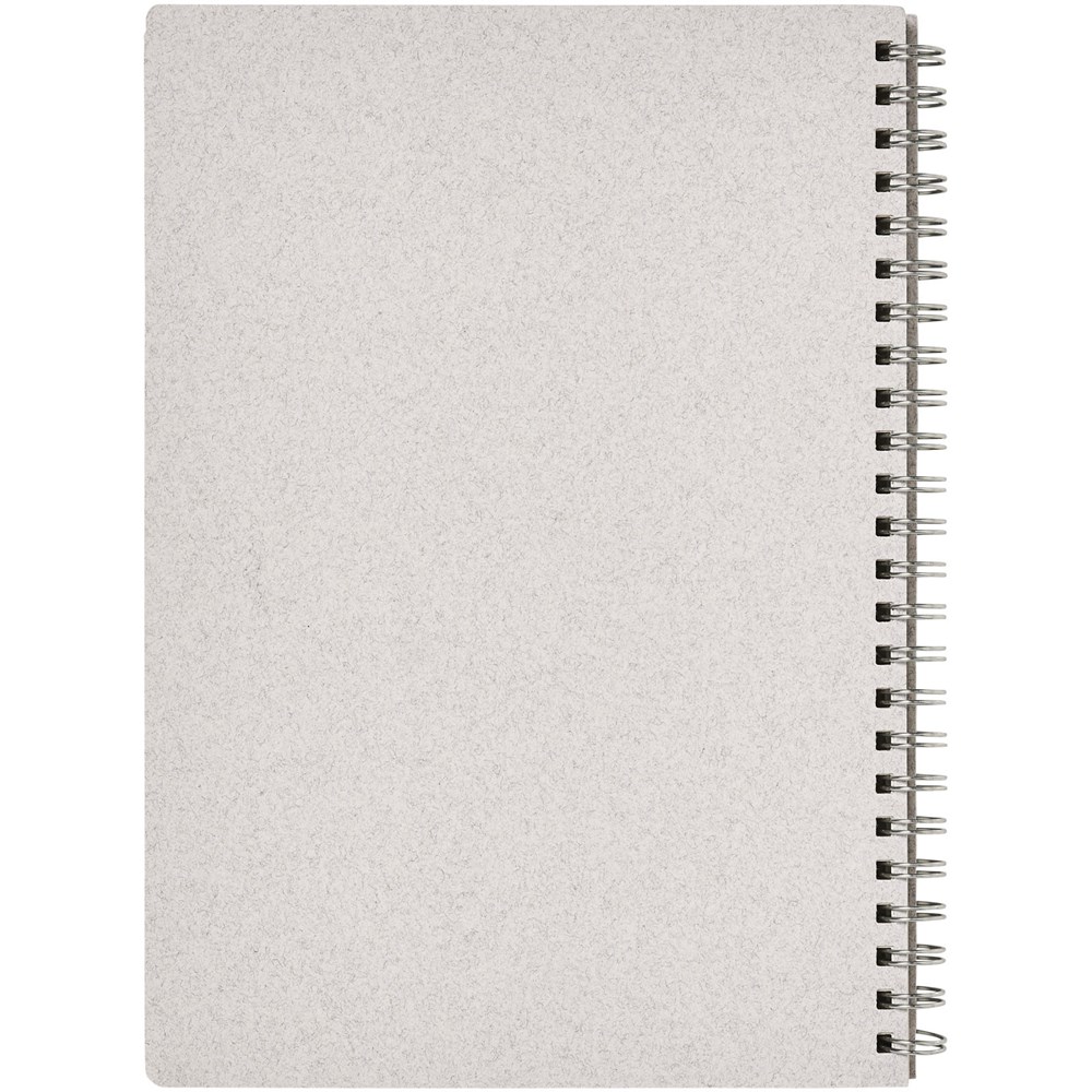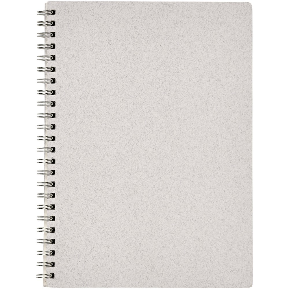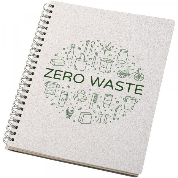 A5-formaat Wire-O notitieboek met een FSC-gecertificeerde kaft die katoenafval (15%) en van de consument afkomstig gerecycleerd afval (40%) bevat. Bevat 80 vellen, 80 g/m2 100% FSC-gerecycleerd papier met een gestippeld raster. De gestippelde lay-out combineert de voordelen van gelijnd, blanco en geblokt papier door structuur te bieden en tegelijkertijd creativiteit te stimuleren. Hierdoor is dit notitieboek geschikt voor een groot aantal gebruikers. Dankzij de spiraal kan het notitieboek handig plat liggen en gemakkelijk worden dichtgevouwen. Gemaakt in Italie.