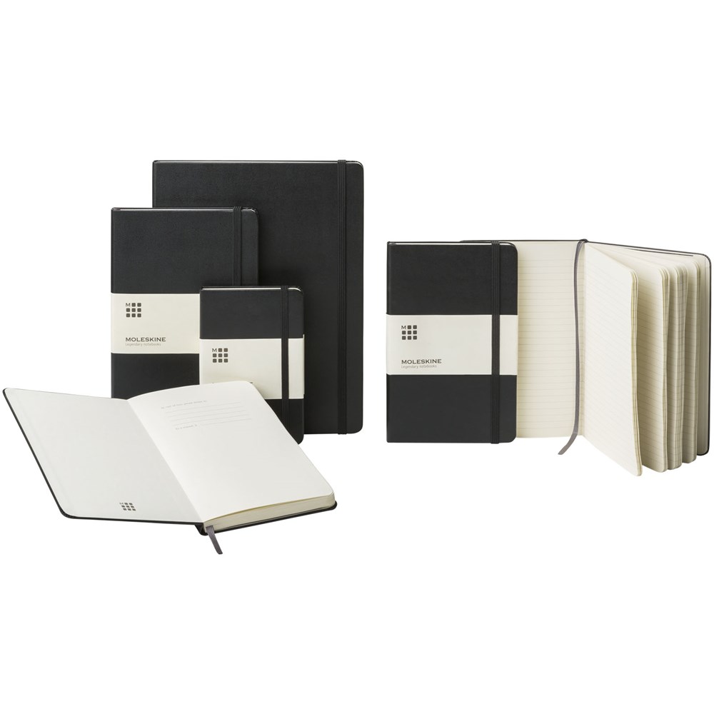 Het Moleskine Classic hardcover notitieboek is nu verkrijgbaar in een medium formaat. Voorzien van de iconische afgeronde hoeken, een elastische sluiting en een bladwijzer. Uitbreidbaar vakje aan de binnenkant van de achterste omslag. Bevat 208 ivoorkleurige gelinieerde pagina's.