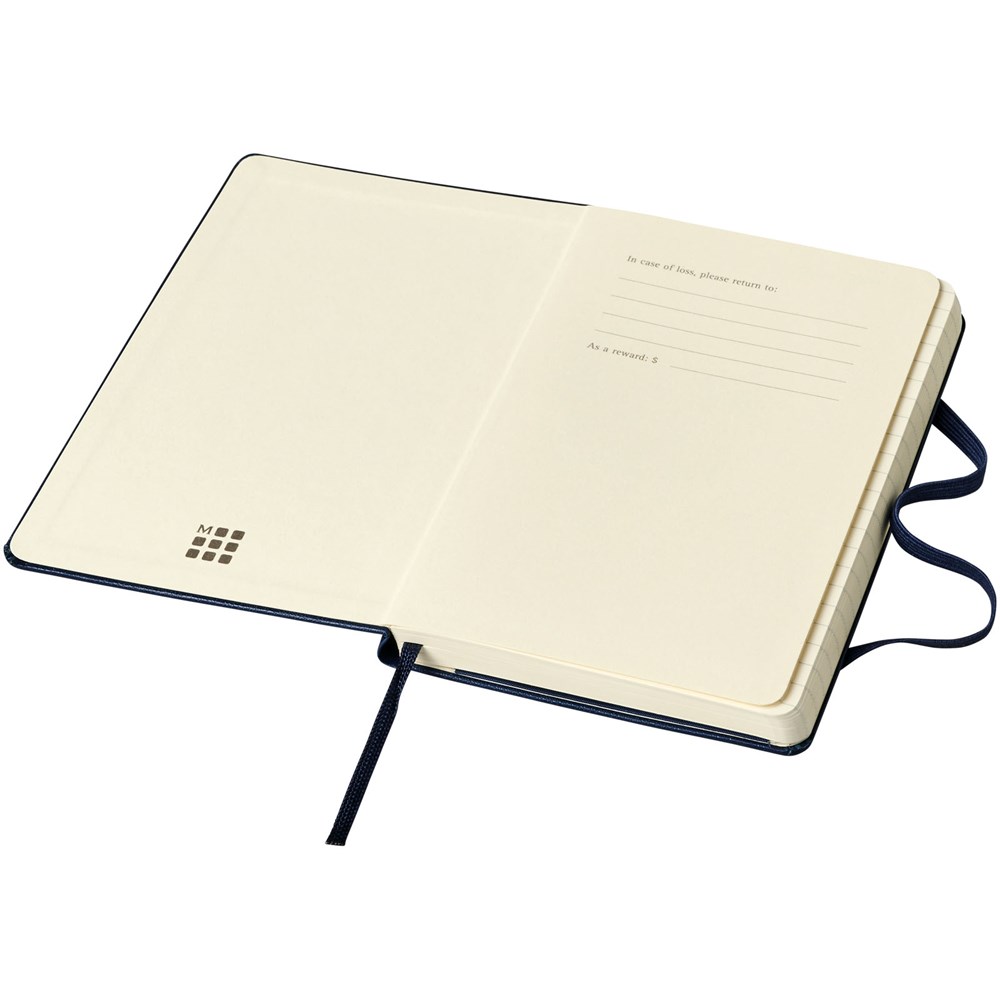 Moleskine Classic hardcover notitieboek in pocketformaat (9 x 14 cm). Verkrijgbaar in diverse stijlvolle, levendige kleuren. Het notitieboek heeft een omslag van gebonden karton met afgeronde hoeken, zuurvrij papier, een bladwijzer en een elastische sluiting. De eerste pagina biedt ruimte voor persoonsgegevens en het noteren van een beloning die de eerlijke vinder in geval van verlies ontvangt. Aan de achteromslag bevindt zich aan uitbreidbaar binnenvak met daarin de geschiedenis van Moleskine. Dit vak kan worden gebruikt voor losse papieren en notities. Bevat 192 ivoorkleurige gelinieerde pagina's. Deze versie is ook verkrijgbaar in effen wit, geruit en gelinieerd papier.