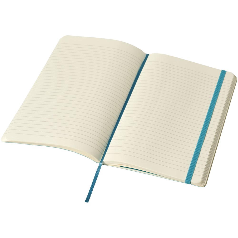Het Moleskine Classic large (13 x 21 cm) softcover notitieboek is verkrijgbaar in diverse stijlvolle, levendige kleuren. Het notitieboek heeft een kartonnen zachte omslag met afgeronde hoeken, zuurvrij papier, een bladwijzer en een elastische sluiting. De eerste pagina biedt ruimte voor persoonsgegevens en het noteren van een beloning die de eerlijke vinder in geval van verlies ontvangt. Aan de achteromslag bevindt zich aan uitbreidbaar binnenvak met daarin de geschiedenis van Moleskine. Dit vak kan worden gebruikt voor losse papieren en notities. Bevat 192 ivoorkleurige gelinieerde pagina's. Deze versie is ook verkrijgbaar met stippen, ruitjes en in effen.