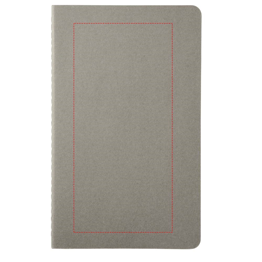 Bevat een kartonnen omslag met afgeronde hoeken. Zichtbare stiksels op de rug, met een flap voor losse notities. Bevat 80 70 gsm ivoorkleurige pagina's met lijntjes. De laatste 16 vellen zijn uitscheurbaar. Pagina's zijn ook verkrijgbaar met stippen, ruitjes en in effen.