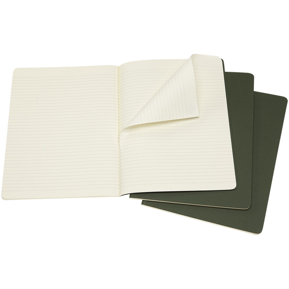 Bevat een kartonnen omslag met afgeronde hoeken. Zichtbare stiksels op de rug, met een flap voor losse notities. Bevat 120 70 gsm ivoorkleurige pagina's met lijntjes. De laatste 16 vellen zijn uitscheurbaar. Pagina's zijn ook verkrijgbaar met stippen, ruitjes en in effen.