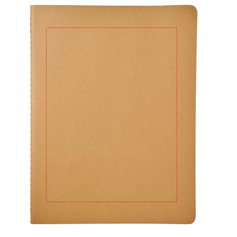 Bevat een kartonnen omslag met afgeronde hoeken. Zichtbare stiksels op de rug, met een flap voor losse notities. Bevat 120 70 gsm ivoorkleurige pagina's met lijntjes. De laatste 16 vellen zijn uitscheurbaar. Pagina's zijn ook verkrijgbaar met stippen, ruitjes en in effen.