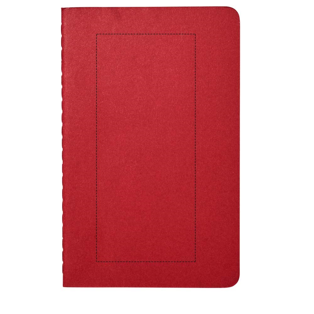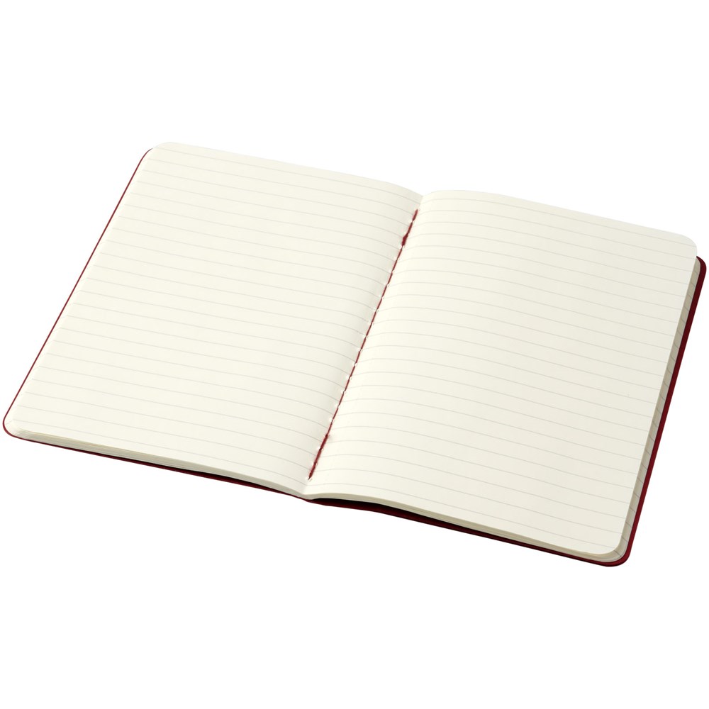 Bevat een kartonnen omslag met afgeronde hoeken. Zichtbare stiksels op de rug, met een flap voor losse notities. Bevat 64 70 gsm ivoorkleurige pagina's met lijntjes. De laatste 16 vellen zijn uitscheurbaar. Pagina's zijn ook verkrijgbaar met stippen, ruitjes en in effen.
