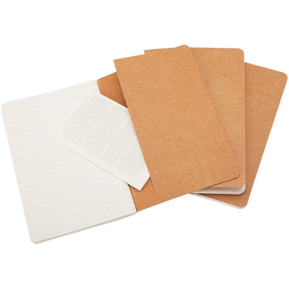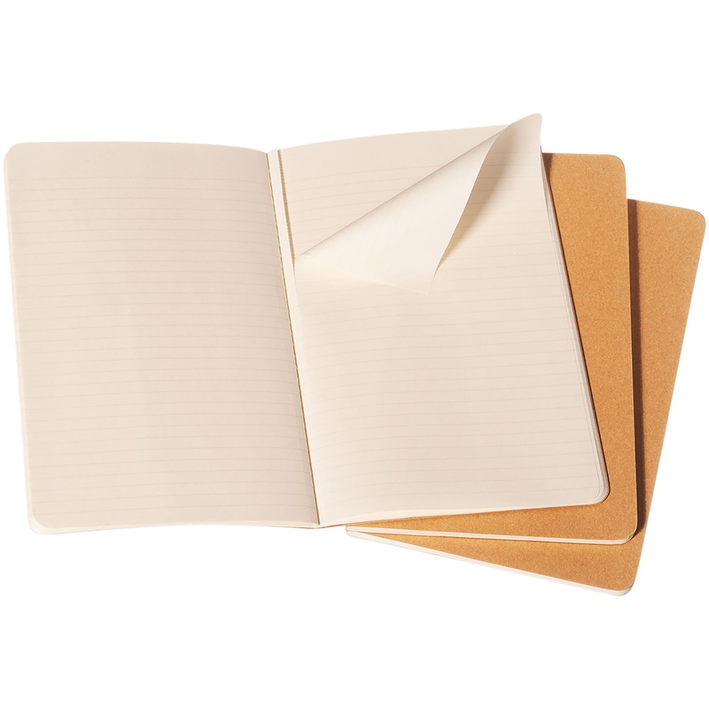 Bevat een kartonnen omslag met afgeronde hoeken. Zichtbare stiksels op de rug, met een flap voor losse notities. Bevat 64 70 gsm ivoorkleurige pagina's met lijntjes. De laatste 16 vellen zijn uitscheurbaar. Pagina's zijn ook verkrijgbaar met stippen, ruitjes en in effen.