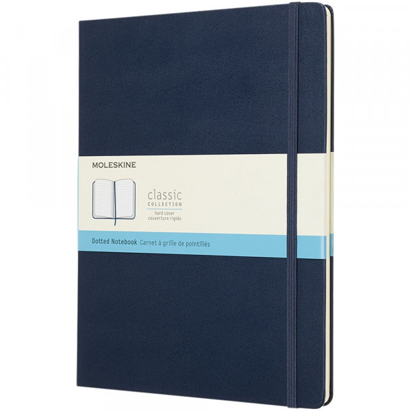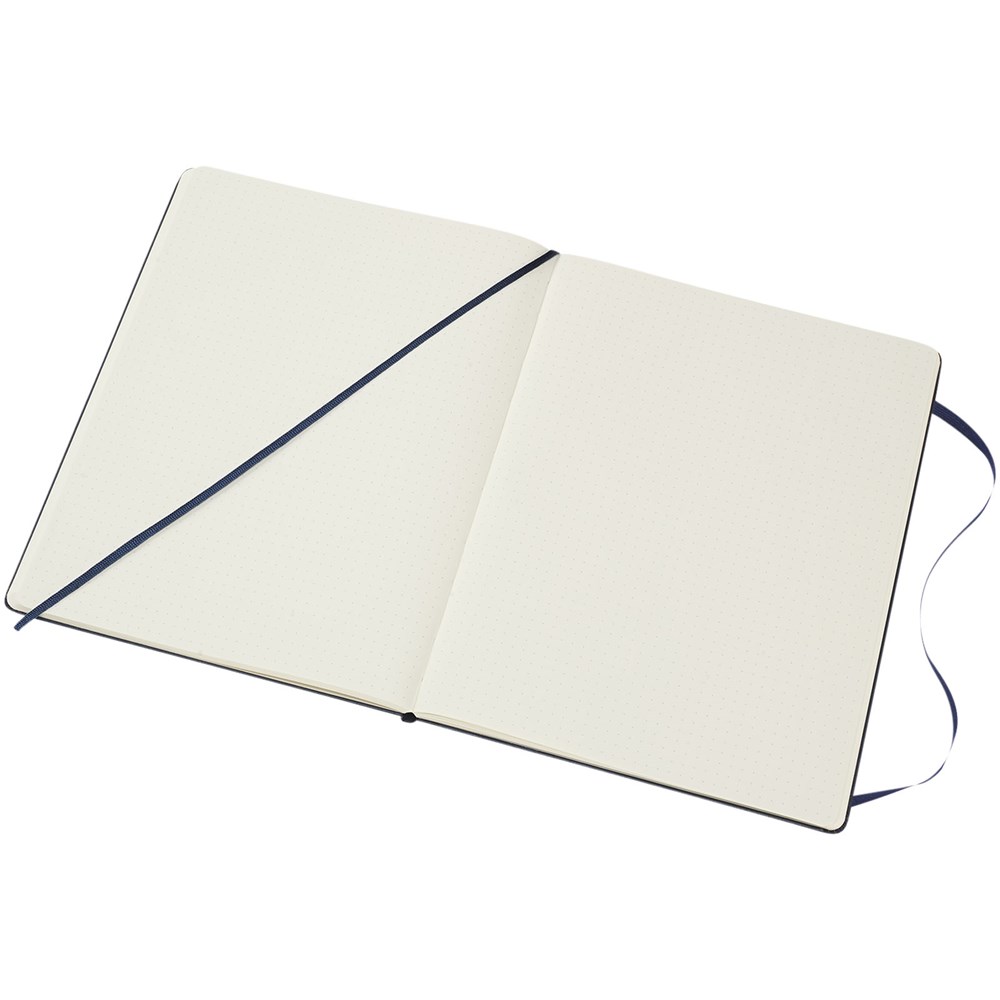 Het extra grote Classic Moleskine notitieboek heeft de iconische afgeronde hoeken en een harde omslag. Voorzien van een elastische sluiting en een bladwijzer. Uitbreidbaar vakje aan de binnenkant van de achterste omslag. Bevat 192 pagina's ivoorkleurig papier met stippen. Pagina’s zijn ook verkrijgbaar met lijntjes, ruiten en effen papier.