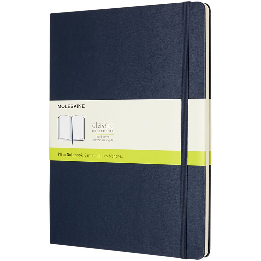 Ons extra grote Classic Moleskine notitieboek heeft de iconische afgeronde hoeken en een harde omslag. Voorzien van een elastische sluiting en een bladwijzer. Uitbreidbaar vakje aan de binnenkant van de achterste omslag. Bevat 192 pagina's ivoorkleurig effen papier. Pagina's zijn ook verkrijgbaar met lijntjes, stippen en ruitjes.