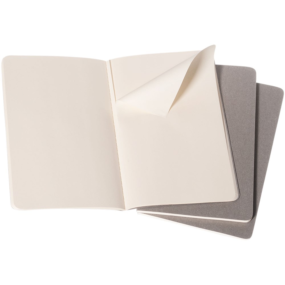 Bevat een kartonnen omslag met afgeronde hoeken. Zichtbare stiksels op de rug, met een flap voor losse notities. Bevat 80 70 gsm ivoorkleurige effen pagina's. De laatste 16 vellen zijn uitscheurbaar. Pagina's zijn ook verkrijgbaar met lijntjes, stippen en ruitjes.