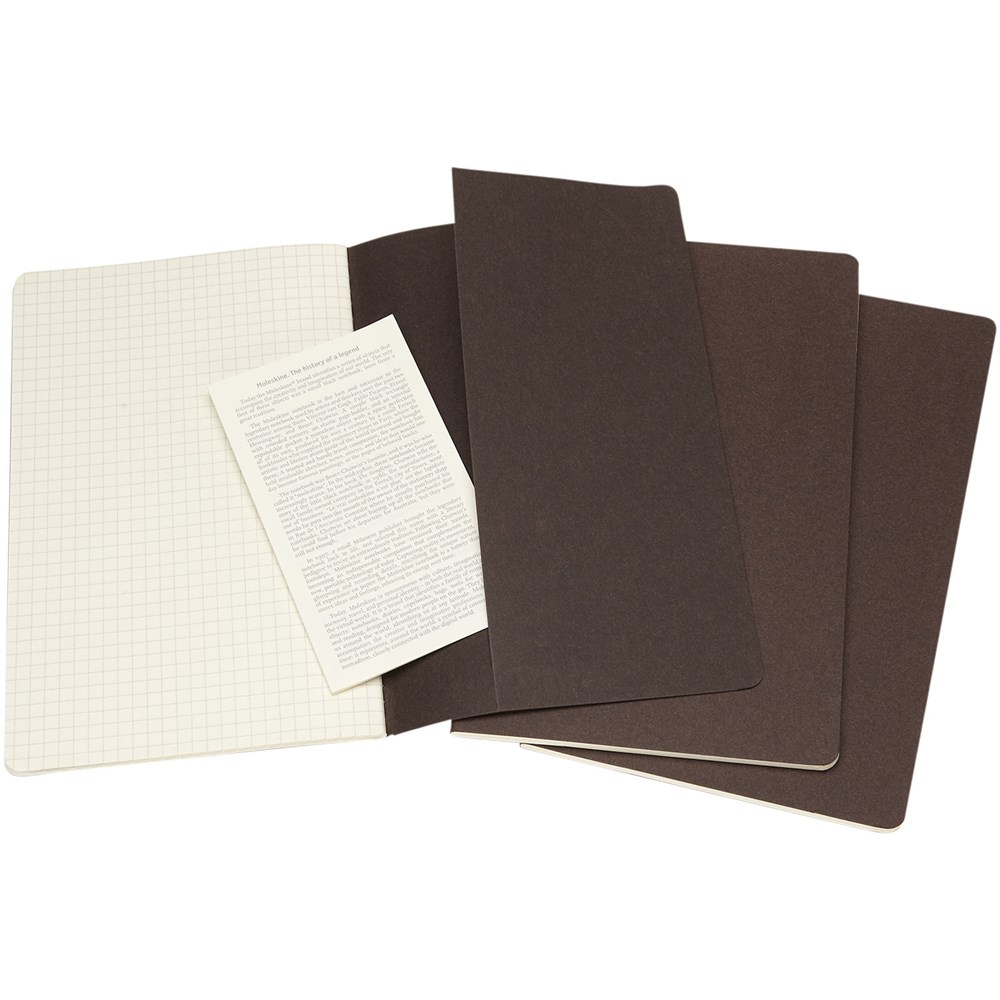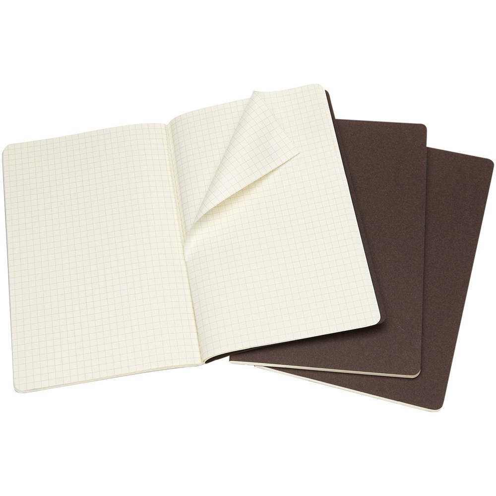 Bevat een kartonnen omslag met afgeronde hoeken. Zichtbare stiksels op de rug, met een flap voor losse notities. Bevat 80 70 gsm ivoorkleurige pagina's met ruitjes. De laatste 16 vellen zijn uitscheurbaar. Pagina's zijn ook verkrijgbaar met ruitjes, stippen en in effen.