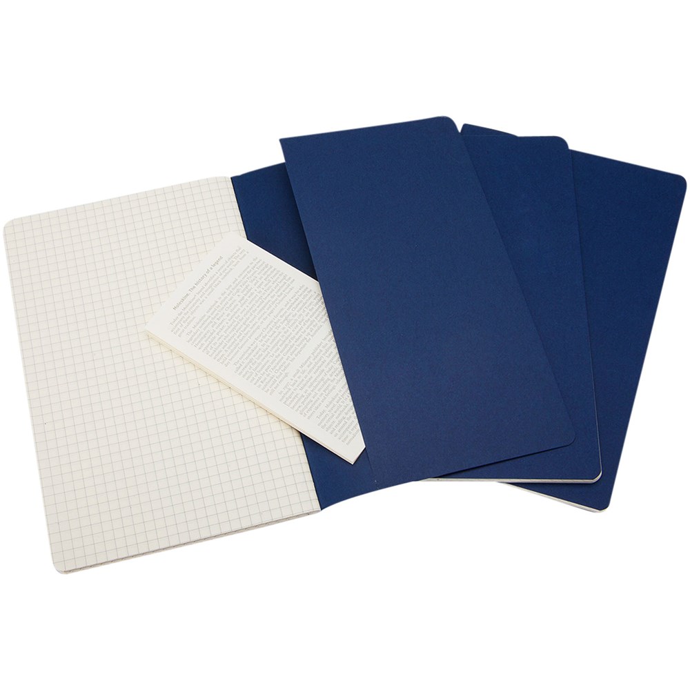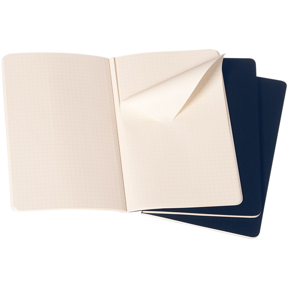 Bevat een kartonnen omslag met afgeronde hoeken. Zichtbare stiksels op de rug, met een flap voor losse notities. Bevat 80 70 gsm ivoorkleurige pagina's met ruitjes. De laatste 16 vellen zijn uitscheurbaar. Pagina's zijn ook verkrijgbaar met ruitjes, stippen en in effen.