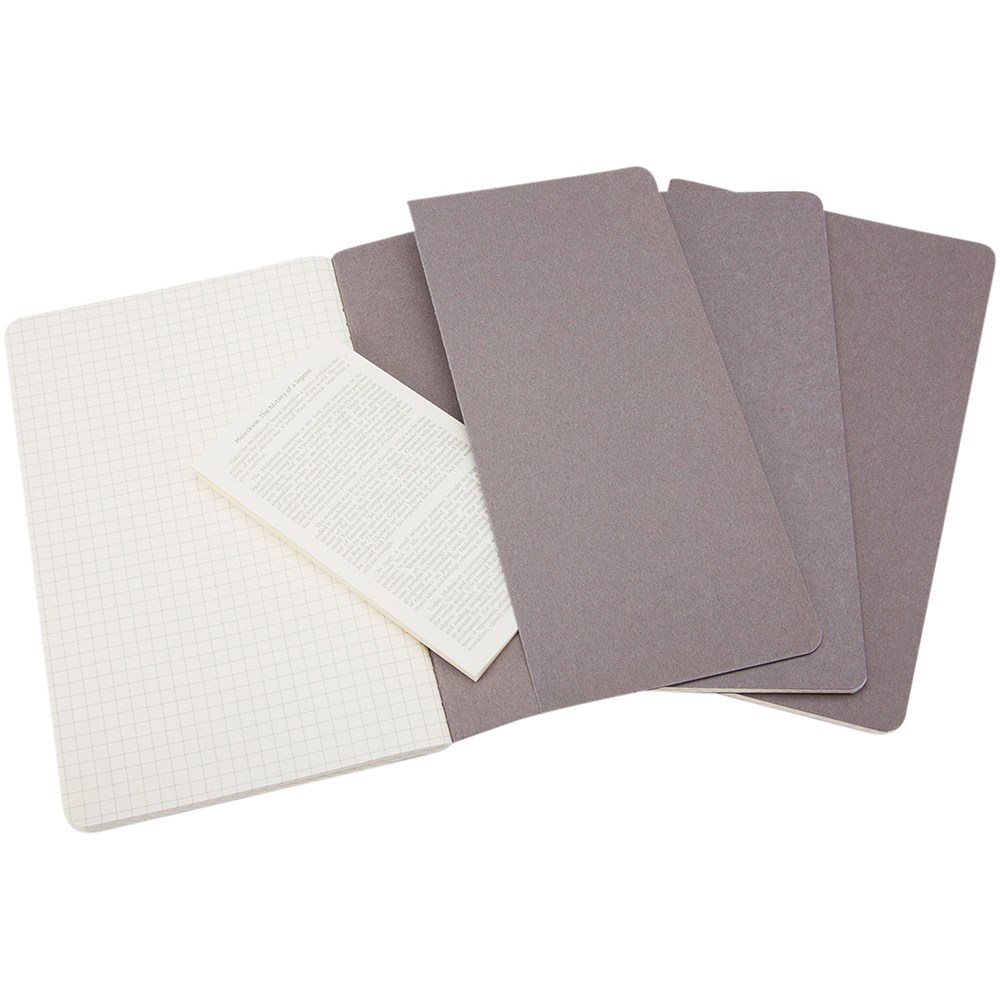 Bevat een kartonnen omslag met afgeronde hoeken. Zichtbare stiksels op de rug, met een flap voor losse notities. Bevat 80 70 gsm ivoorkleurige pagina's met ruitjes. De laatste 16 vellen zijn uitscheurbaar. Pagina's zijn ook verkrijgbaar met ruitjes, stippen en in effen.