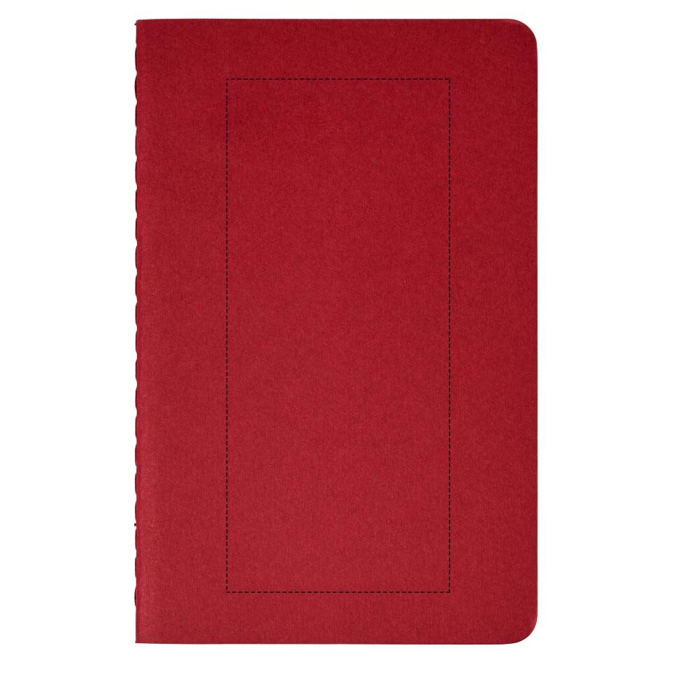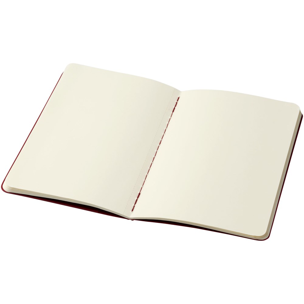 Bevat een kartonnen omslag met afgeronde hoeken. Zichtbare stiksels op de rug, met een flap voor losse notities. Bevat 64 70 gsm ivoorkleurige effen pagina's. De laatste 16 vellen zijn uitscheurbaar. Pagina's zijn ook verkrijgbaar met lijntjes, stippen en ruitjes.
