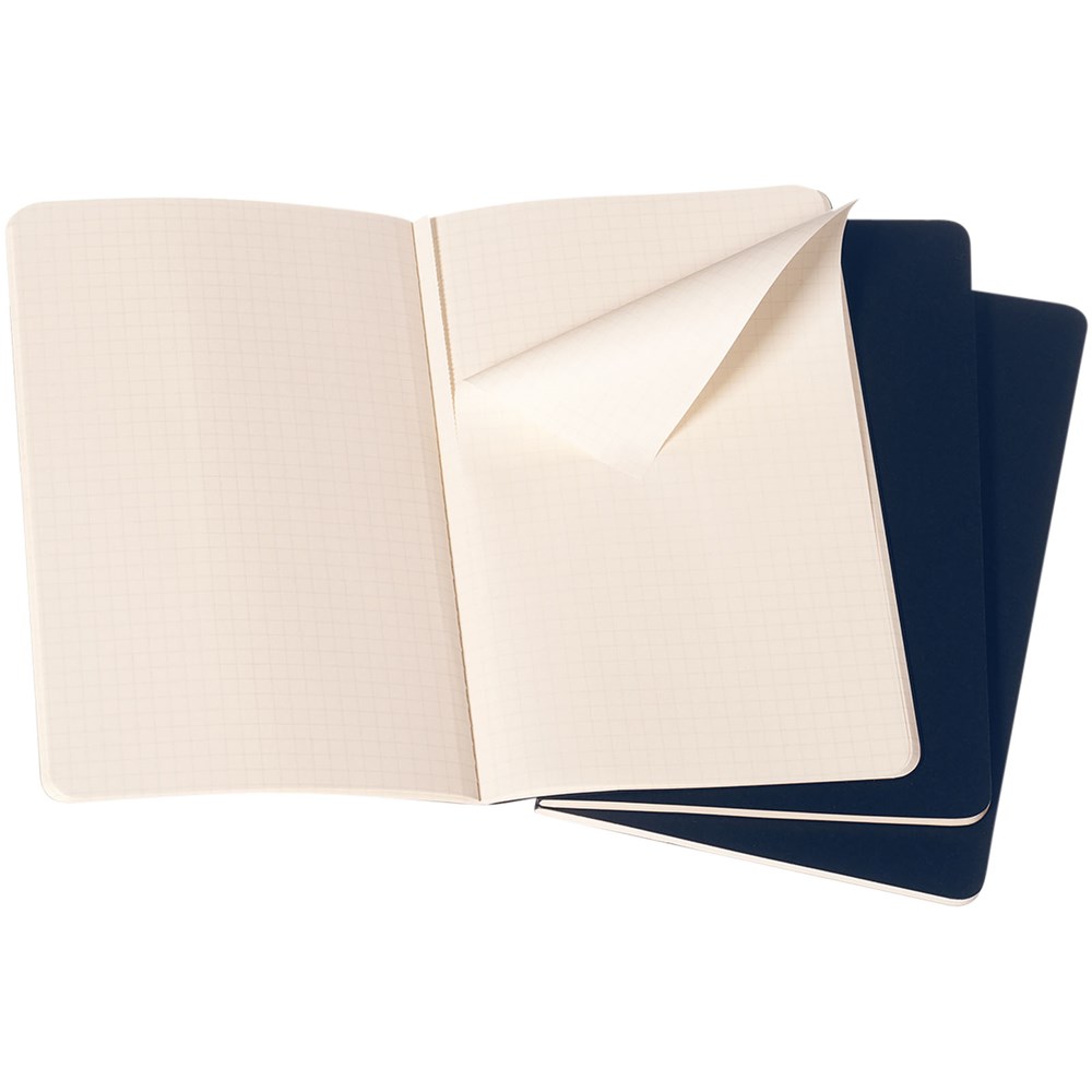 Bevat een kartonnen omslag met afgeronde hoeken. Zichtbare stiksels op de rug, met een flap voor losse notities. Bevat 64 70 gsm ivoorkleurige pagina's met ruitjes. De laatste 16 vellen zijn uitscheurbaar. Pagina's zijn ook verkrijgbaar met ruitjes, stippen en in effen.