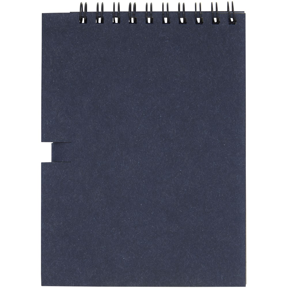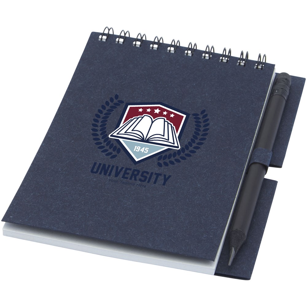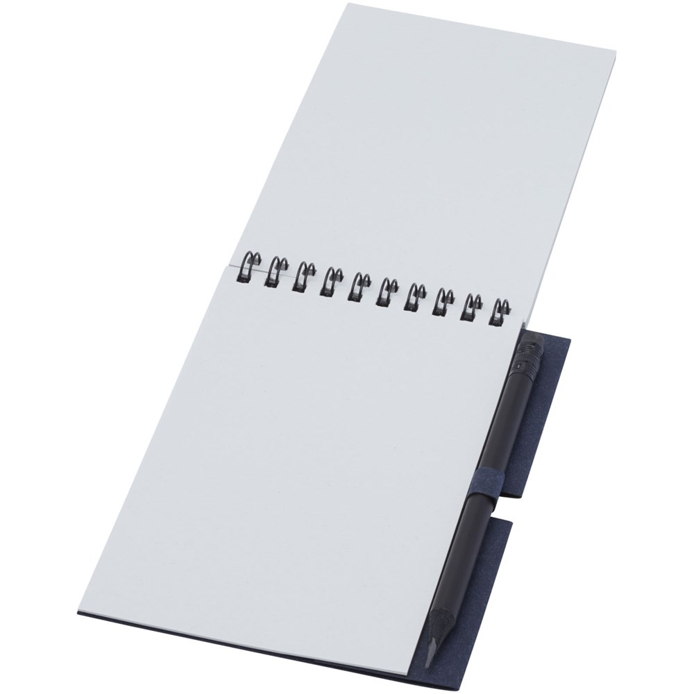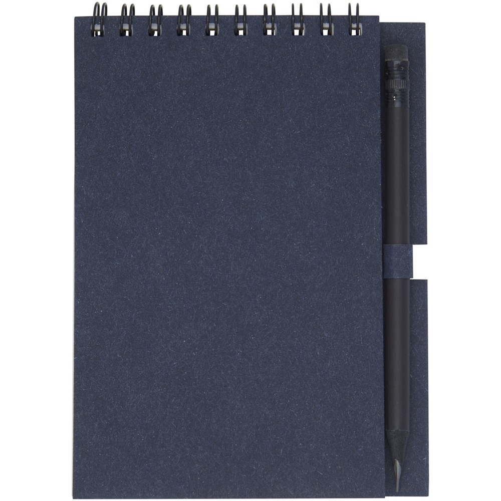 Gerecycled wire-O notitieboek met papieren kaft met 40 vellen, 80 g/m² blanco FSC gerecycled papier, en een zwart potlood. Het notitieboekje is gemaakt in Italië.
