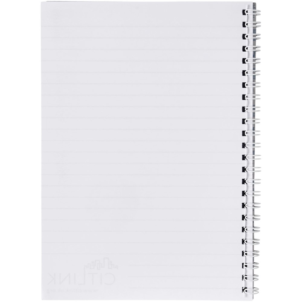 Desk-Mate® spiraal A5 notitieboek. Dit notitieboek heeft een witte of zwarte spiraal. Verkrijgbaar in verschillende maten. Bevat een omslag van glanskarton (250 g/m2) en (80 g/m2) blanco papier. Standaard geleverd met 50 vellen, ook verkrijgbaar met 80 vellen. Decoratie mogelijk op de omslag en op elk blad.