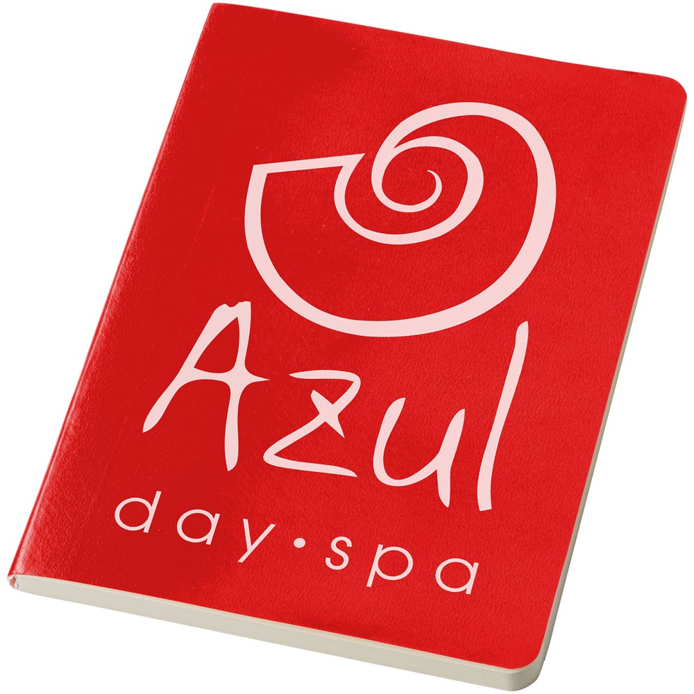 A5 formaat notitieboek met gelijmde rug en 80 pagina's van 70 gram gelinieerd papier.