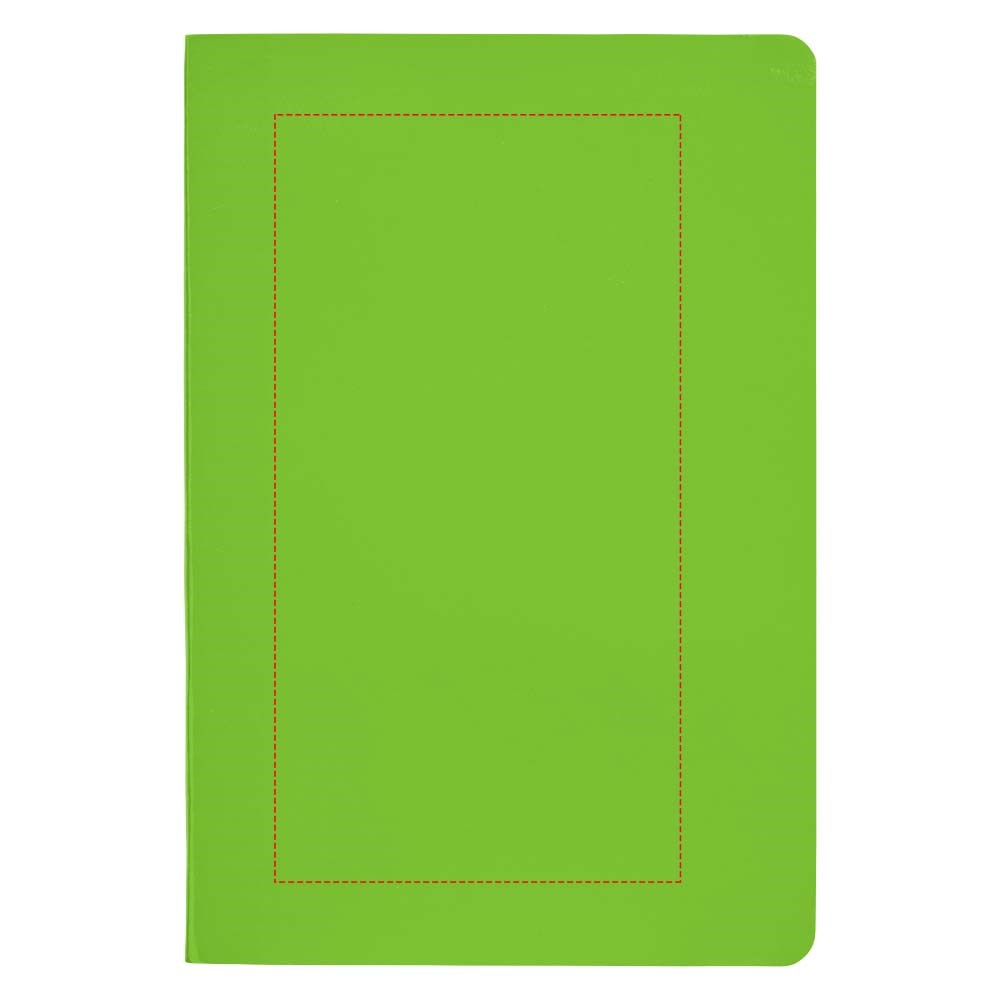 A5 formaat notitieboek met gelijmde rug en 80 pagina's van 70 gram gelinieerd papier.