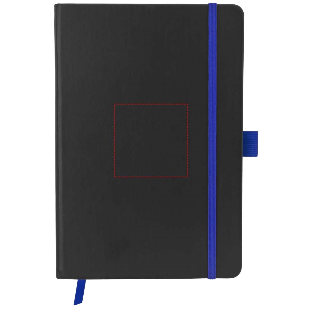 A5-formaat zwart hardcover notitieboek, voelt zacht aan. Beschikt over gekleurde paginaranden en een bijpassende kleur pagina-lint, elastische sluiting en penlus voor een coherente look. De beste keuze als je op zoek bent naar een voordelige notitieboek met bijpassende kleurendetails. Inclusief 80 pagina’s (70 g / m2) crèmekleurig papier.