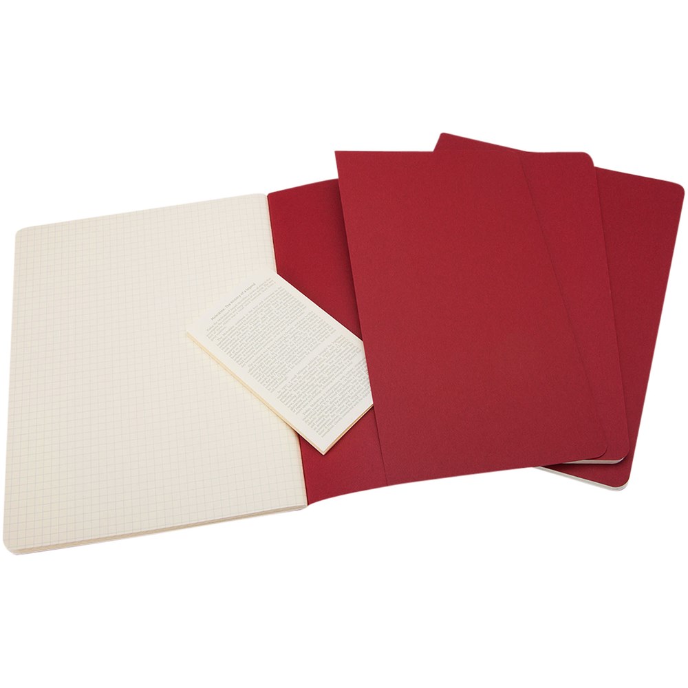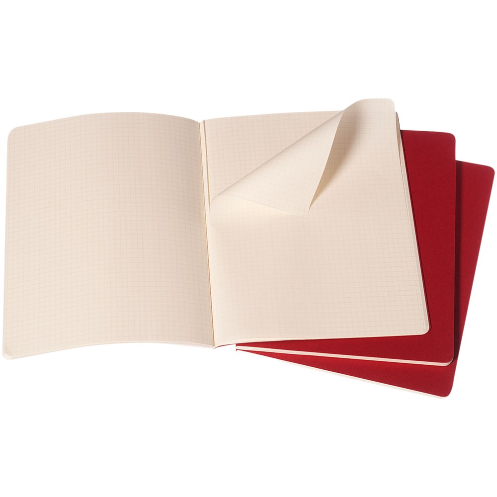 Bevat een kartonnen omslag met afgeronde hoeken. Zichtbare stiksels op de rug, met een flap voor losse notities. Bevat 120 70 gsm ivoorkleurige pagina's met ruitjes. De laatste 16 vellen zijn uitscheurbaar. Pagina's zijn ook verkrijgbaar met ruitjes, stippen en in effen.