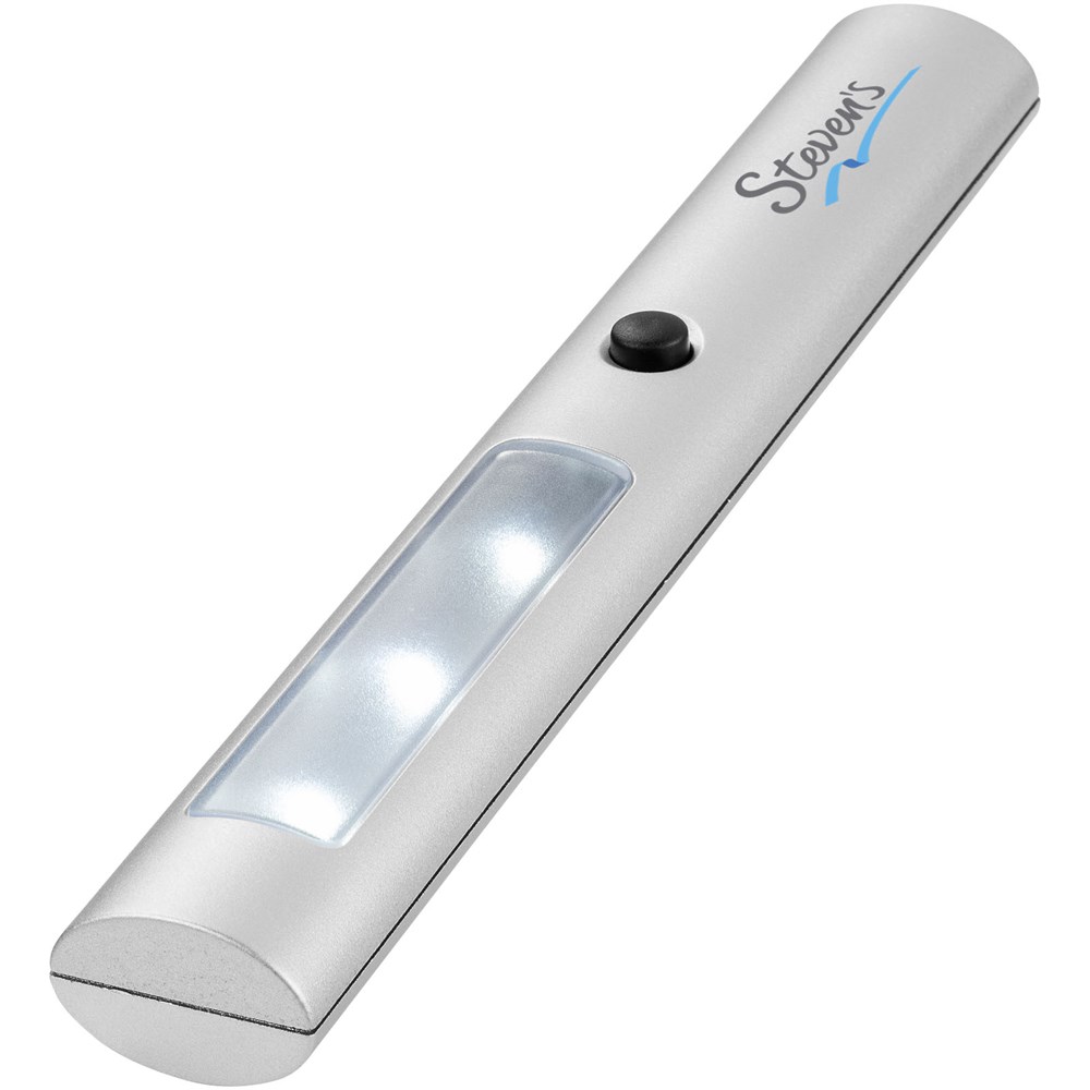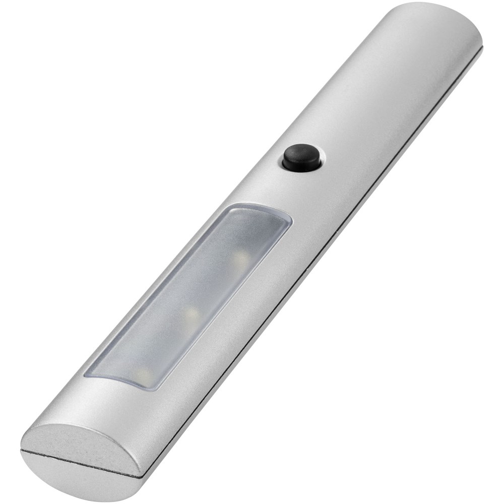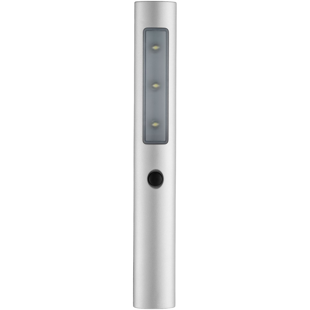 Zaklamp met drievoudig helder LED licht en twee standen: normaal en knipperlicht. Aan-/uit-schakelaar op de voorzijde, tweedelige magneet aan de achterkant. Inclusief batterijen.