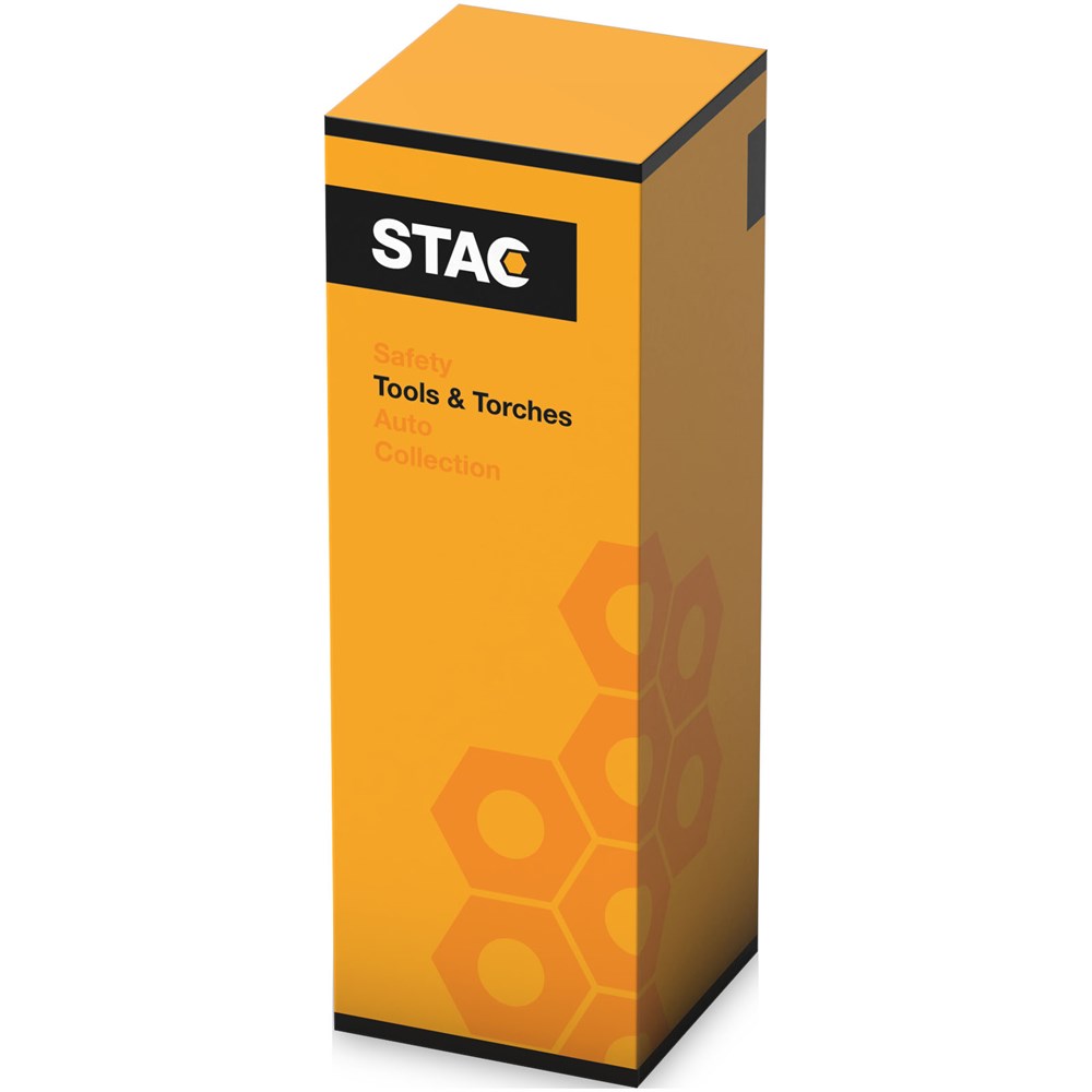 Perfect om in huis te hebben. Het heeft 1 LED lampje, 3 kruiskoppen, 3 platte koppen en een klein gereedschap met schroef op de bovenkant. Druk eenmaal op de knop voor de zaklamp, en opnieuw voor het verlichten van het gereedschap met de LED. Verpakt in een STAC geschenkverpakking. Batterijen inbegrepen. Exclusief ontwerp.