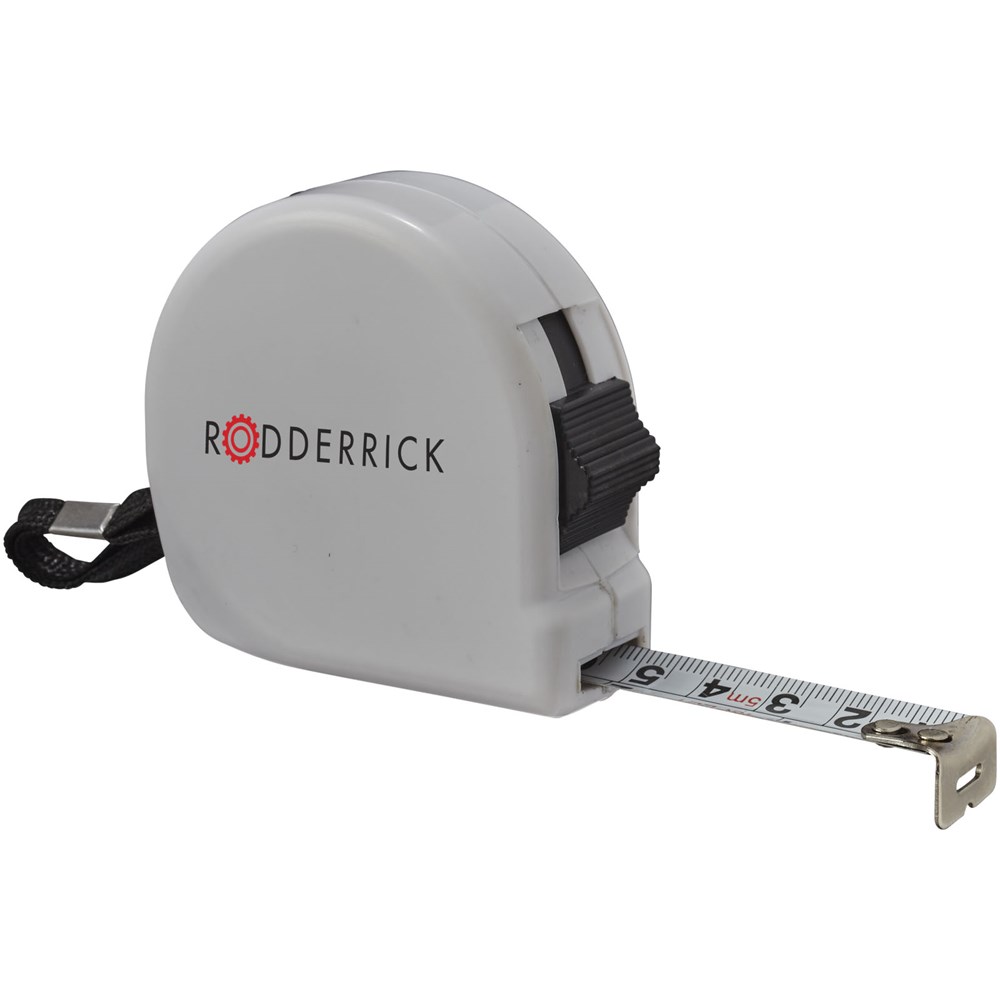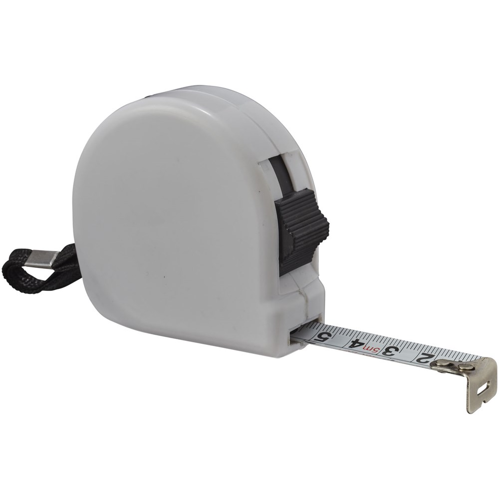 Rolmaat van 5 meter inclusief riemclip en polsbandje. Verdeling in centimeters en inches. Niet geschikt voor professioneel gebruik en geijkte toepassingen.