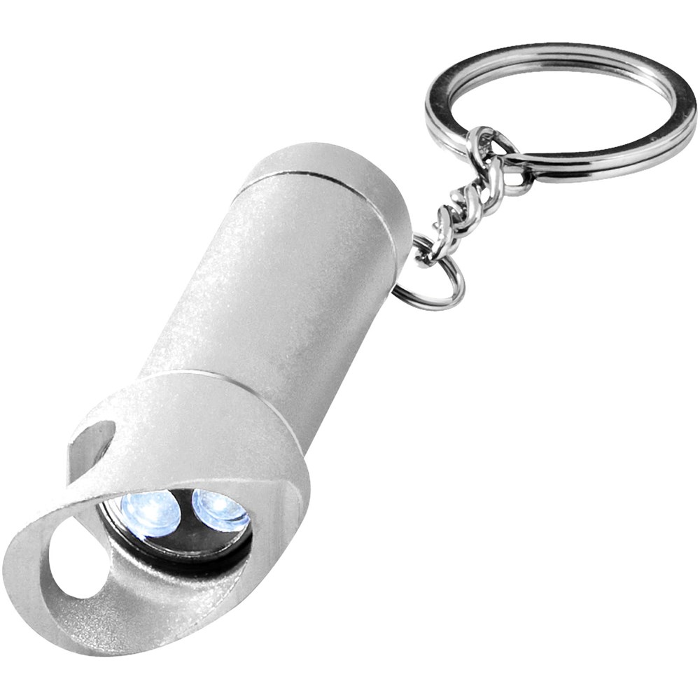 Sleutelhanger met drie witte LED-lichten met flesopener. Aan-/uit-drukknop. Metalen sleutelring.... mehr