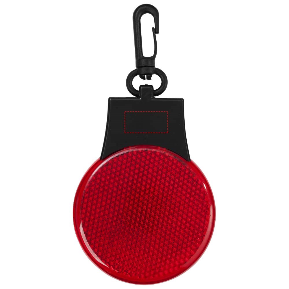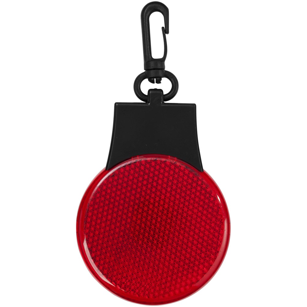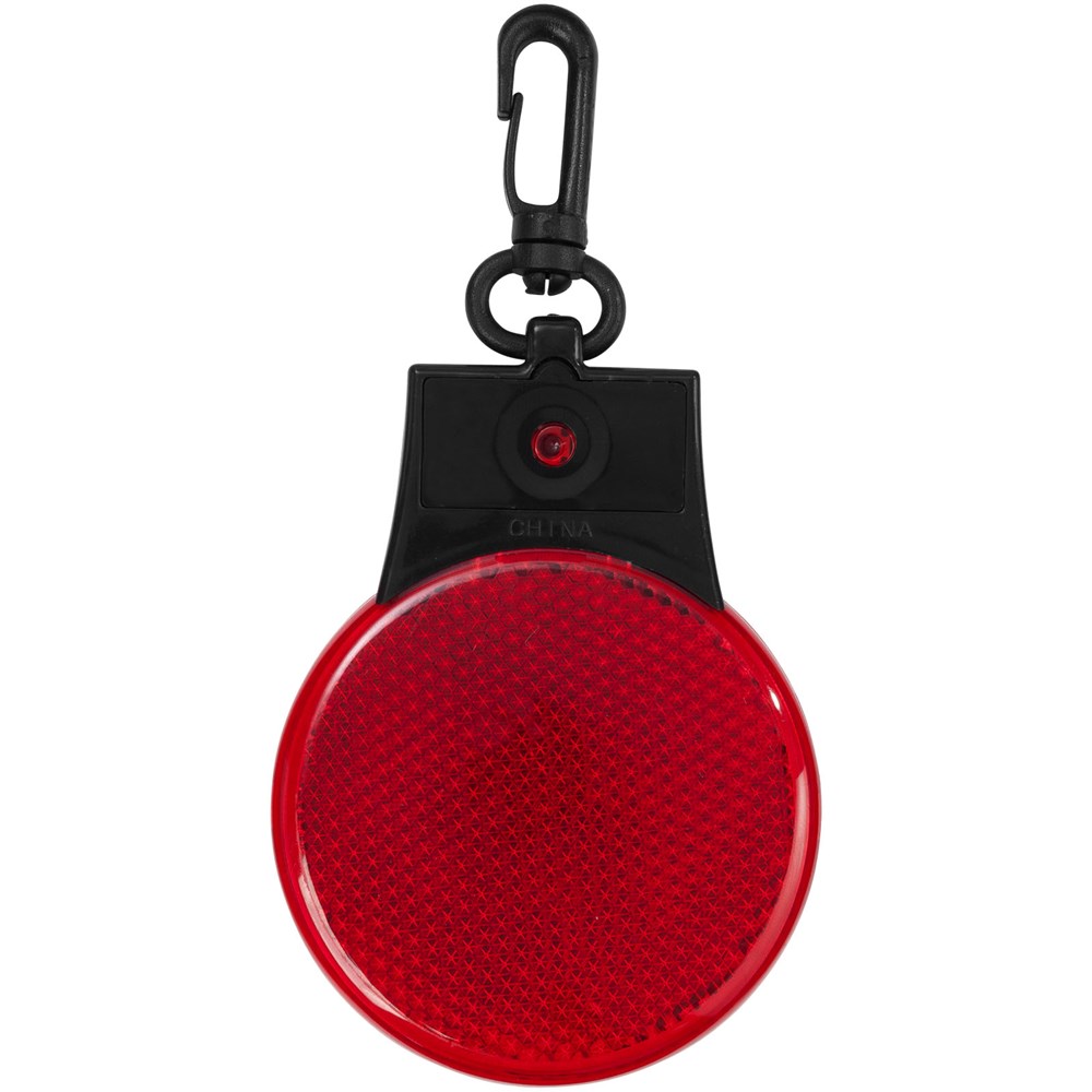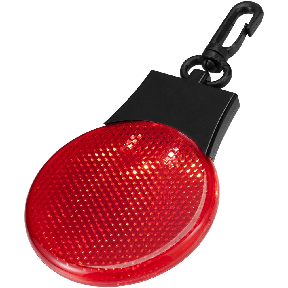 Reflectorlamp met drie LED lichtstanden – constant, knipperend en flitsend van links naar rechts. Met aan-/uitknop en functieschakelaar op de achterkant. Kunststof clip. Inclusief batterijen.