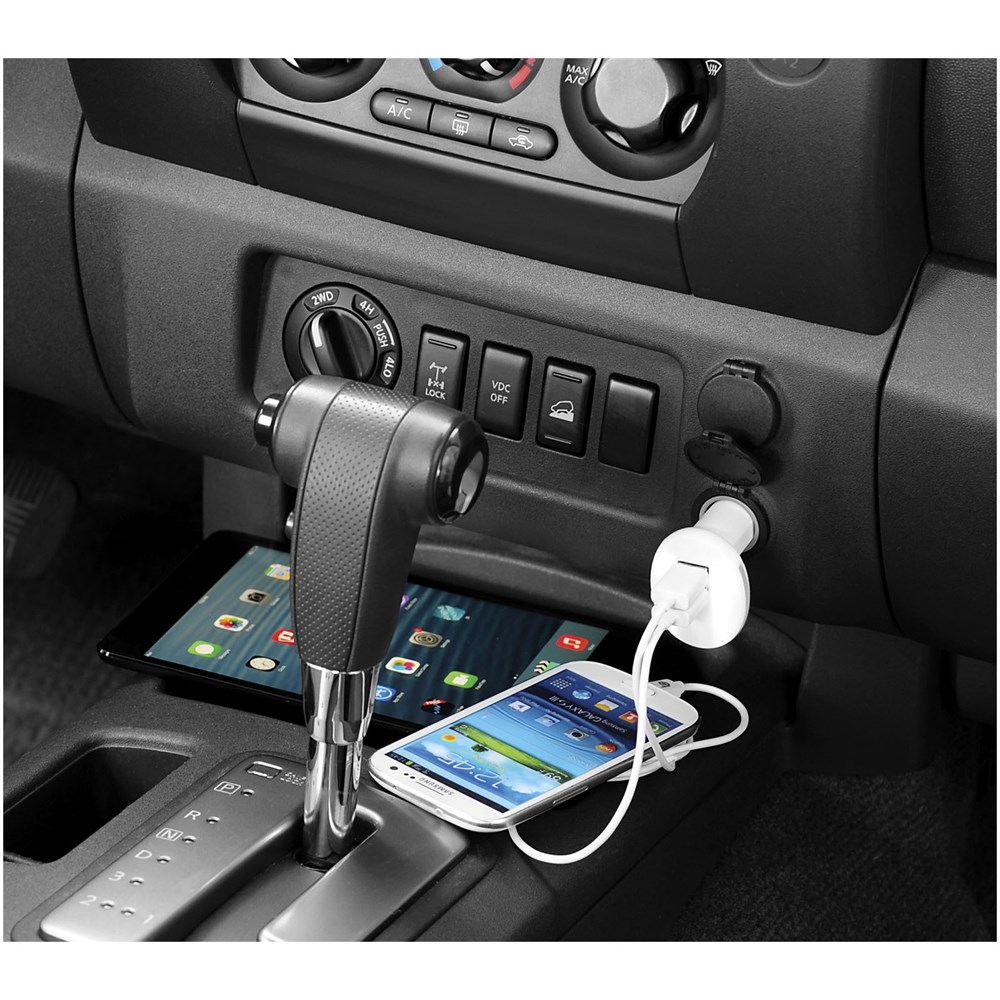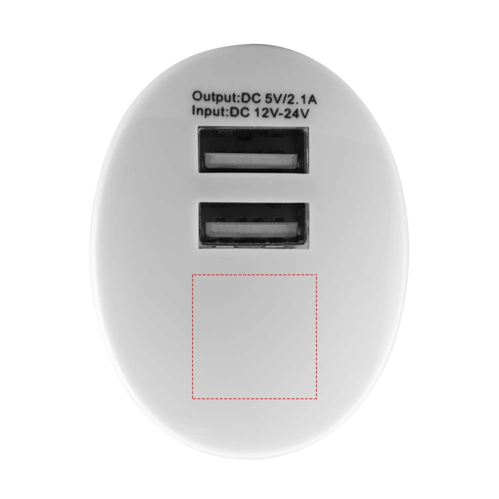 Deze adapter heeft een dubbele poort en een LED-ring met wit licht. Geschikt voor smartphones en andere persoonlijke apparaten die worden opgeladen met een USB-kabel, zoals iPad® en andere tablets. Input: 12-24 Volt. Twee USB-poorten (5V/1 Amp & 2,1 Amp), max. output: 2,1 Amp. USB-kabel niet inbegrepen.
