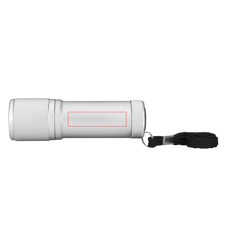 Zaklamp met 9 witte LED's. Drukknop voor aan/uit en polsriempje. Geleverd in een geschenkverpakking met EVA voering. Inclusief 3 AAA-batterijen.