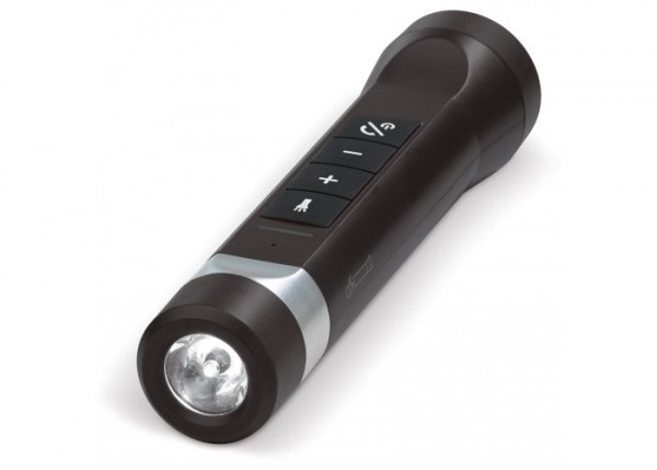 3-in-1 powerbank (2200mAh) met ingebouwde draadloze speaker en zaklamp. Door het meegeleverde opzetstuk is de powerbank en lamp eenvoudig op de fiets te monteren. Ook is de mobiel op te laden of draadloos muziek te luisteren.