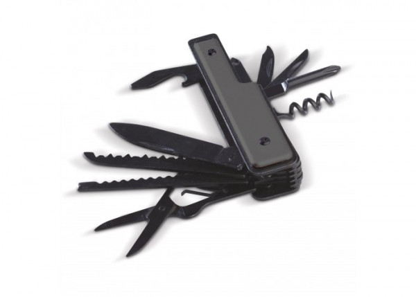 Handig zakmes met maar liefst elf verschillende functies. Een metalen multitool voor allerlei gelegenheden. Trek eropuit en neem dit stoere zakmes mee. Met deze multitool heb je een mes, zaag, schaar, opener, schroevendraaiers, priem, vijl, kurkentrekker en naald met oog altijd bij de hand.