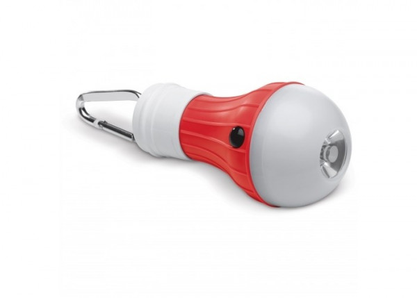 Zaklamp in de vorm van een gloeilamp. Bevat SMD licht. Door middel van de karabijnhaak kan de lamp eenvoudig aan bijvoorbeeld een sleutelbos of tas bevestigd worden. Wordt geleverd in een geschenkverpakking.