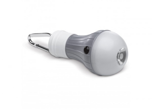 Zaklamp in de vorm van een gloeilamp. Bevat SMD licht. Door middel van de karabijnhaak kan de lamp eenvoudig aan bijvoorbeeld een sleutelbos of tas bevestigd worden. Wordt geleverd in een geschenkverpakking.