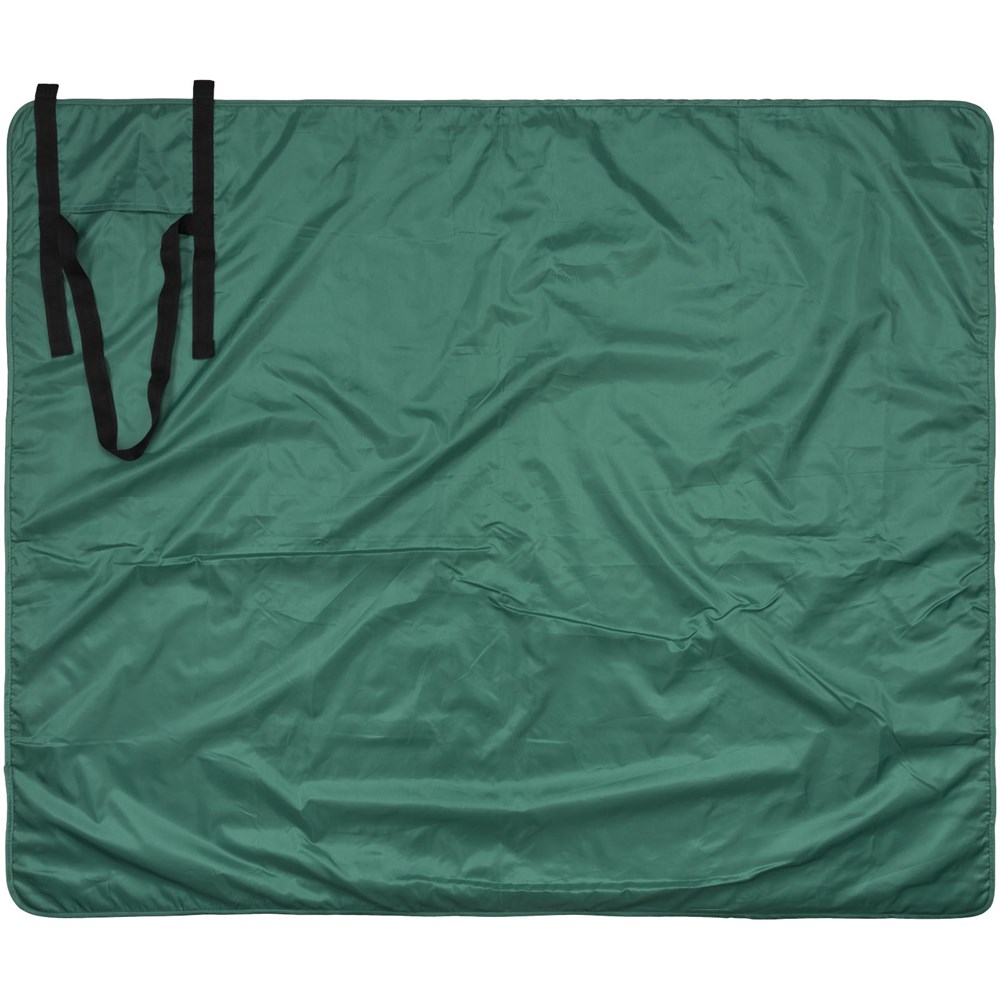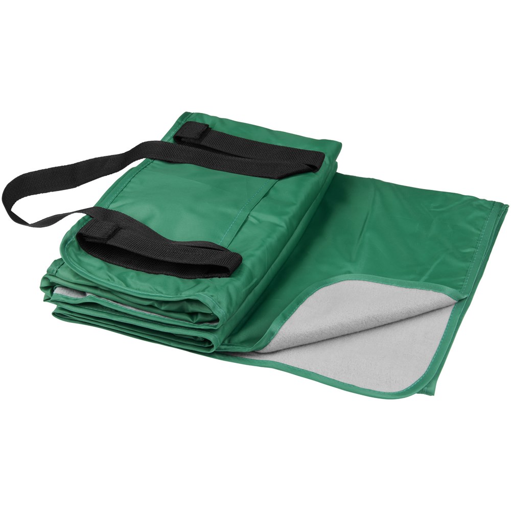 Een compact picknick-kleed met een fleece zijde en een waterbestendige zijde dat gemakkelijk is op te rollen en mee te nemen vanwege de schouderbanden. Afmetingen 145 x 122 cm. Polar fleece 140 g/m² achterkant 190T.