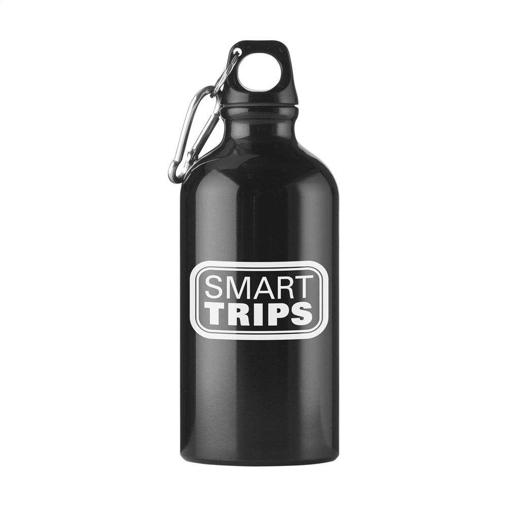 Enkelwandige, aluminium waterfles met hoogglans finish, kunststof schroefdop met sleutelring en metalen karabijnhaak. De karabijnhaak is niet geschikt als klimgereedschap. Lekvrij. Inhoud 500 ml.