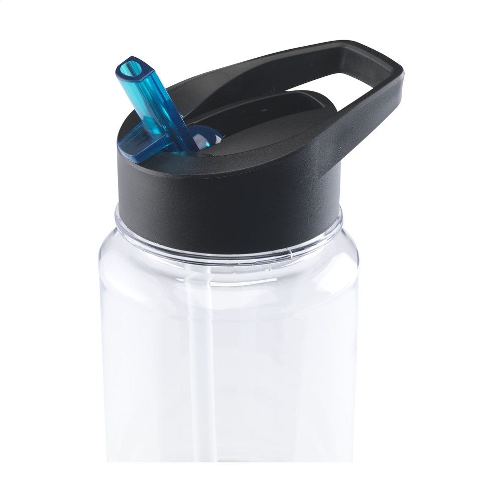 Herbruikbare, trendy waterfles met inklapbaar mondstukje en afsluitbaar rietje. Van helder BPA-vrij Eastman Tritan™ kunststof. De vier afneembare, siliconen ringen vallen direct op en geven deze fles een speels kleuraccent. Inhoud 750 ml. Verkrijgbaar in verschillende kleurcombinaties.