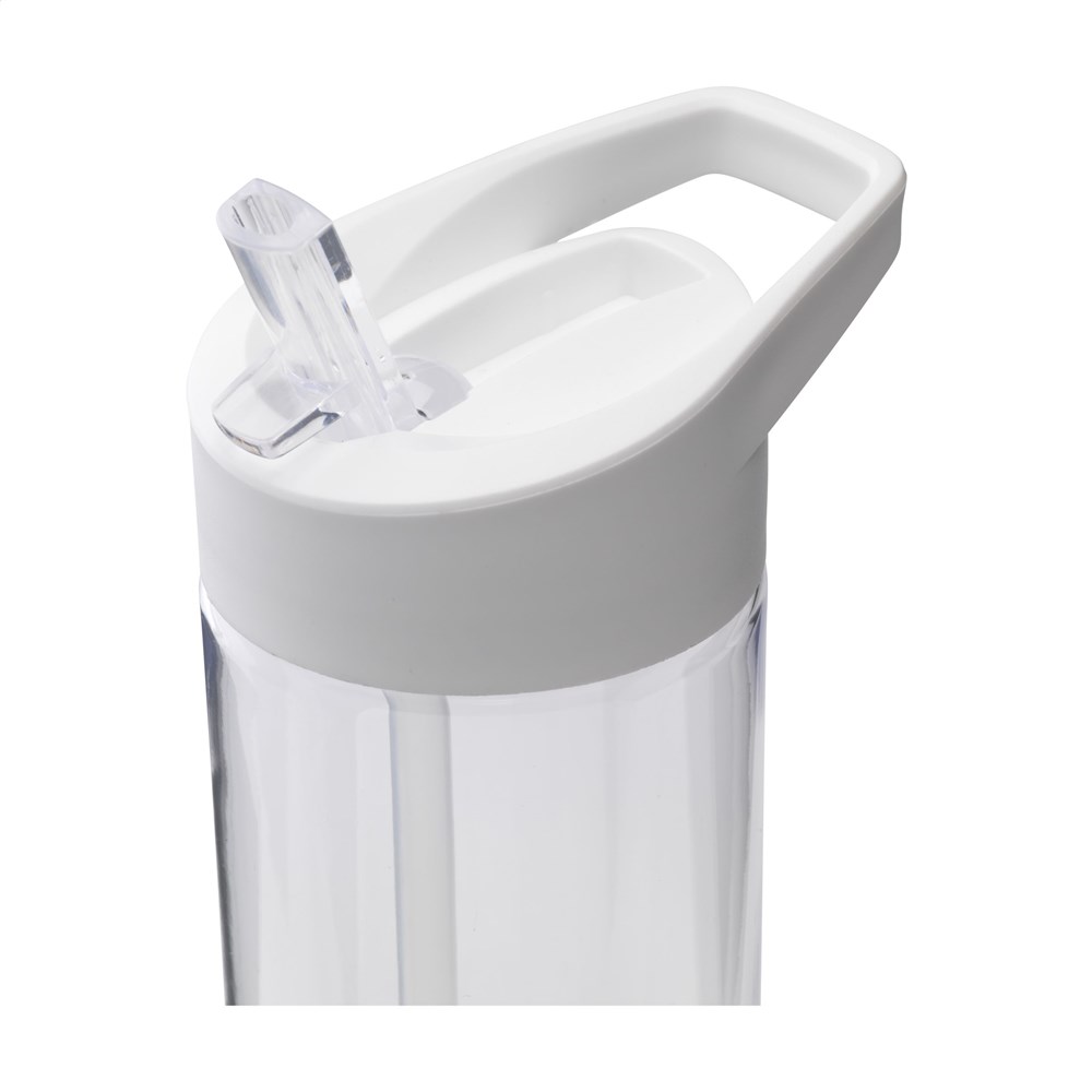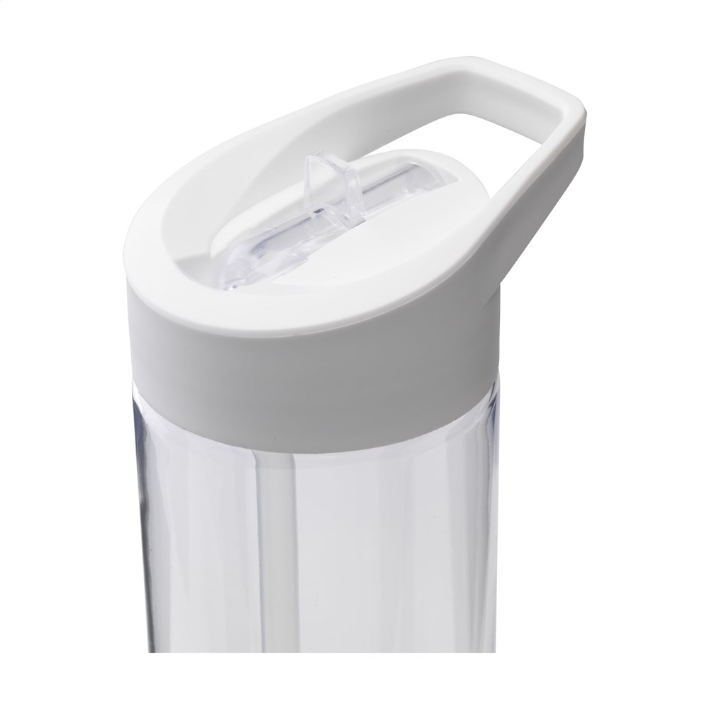 Opvallend slanke waterfles van helder, hoogwaardig Eastman Tritan™; BPA-vrij, milieubewust, duurzaam en herbruikbaar. Met PP kunststof schroefdop voorzien van een inklapbaar mondstukje en afsluitbaar rietje. Lekvrij. Door de slanke vormgeving ligt deze fles bijzonder prettig in de hand. Inhoud 600 ml.