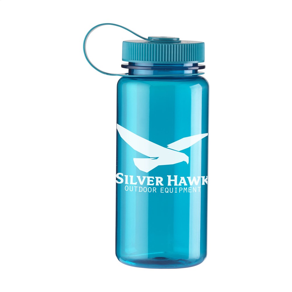 Transparantgekleurde, BPA vrije, AS waterfles met schroefdop en royale drinkopening. Gemakkelijk te reinigen en lekvrij. Inhoud 650 ml.