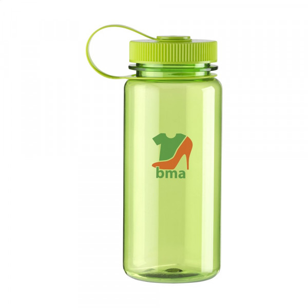 Transparantgekleurde, BPA vrije, AS waterfles met schroefdop en royale drinkopening. Gemakkelijk te reinigen en lekvrij. Inhoud 650 ml.
