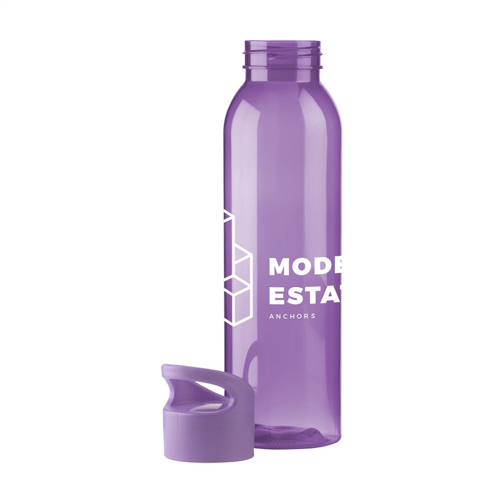 Luxe waterfles van helder Eastman Tritan kunststof: milieuvriendelijk, BPA-vrij, duurzaam en herbruikbaar. Met praktische schroefdop. Lekvrij. Inhoud 650 ml.