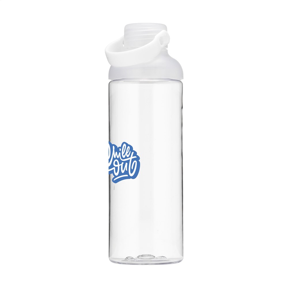 Stijlvolle waterfles van helder, hoogwaardig Eastman Tritan™; BPA-vrij, milieubewust, duurzaam en herbruikbaar. De fles heeft een royale opening en is dus gemakkelijk te reinigen. Met PP schroefdeksel voorzien van een kleine, afsluitbare drinkopening. Met handige draaglus. Lekvrij. Inhoud 600 ml.