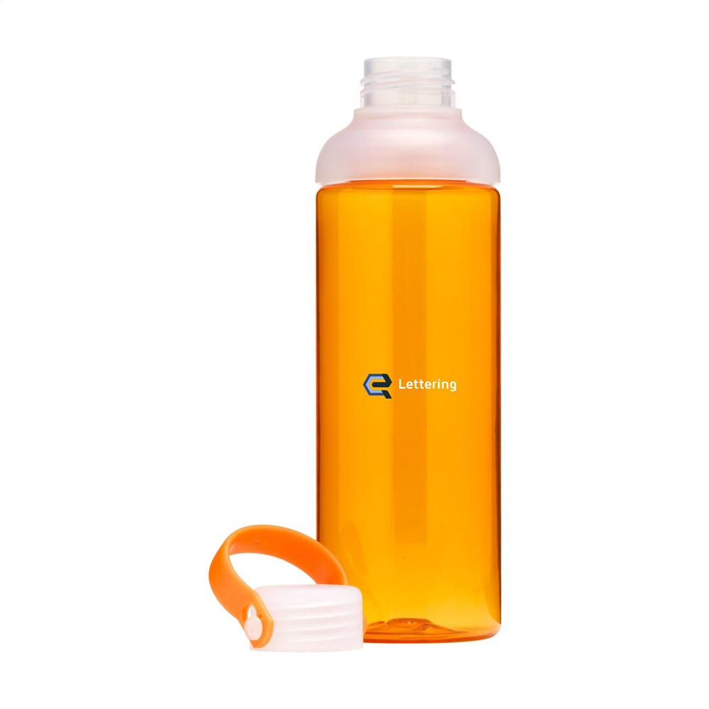 Stijlvolle waterfles van helder, hoogwaardig Eastman Tritan™; BPA-vrij, milieubewust, duurzaam en herbruikbaar. De fles heeft een royale opening en is dus gemakkelijk te reinigen. Met PP schroefdeksel voorzien van een kleine, afsluitbare drinkopening. Met handige draaglus. Lekvrij. Inhoud 600 ml.
